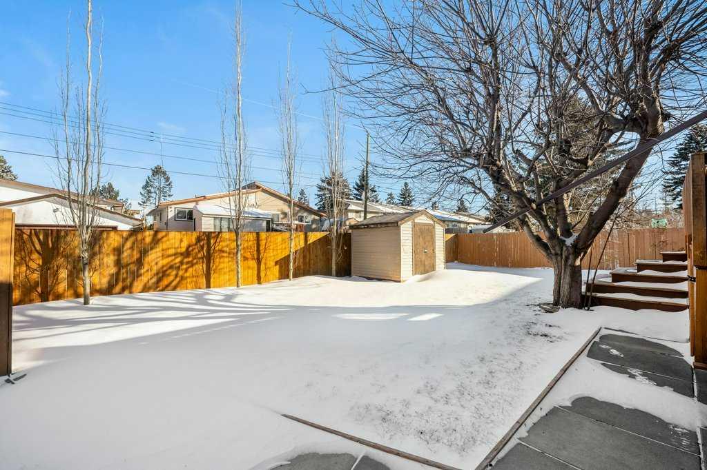 Fantastic turnkey home situated on a huge pie lot in a prime cul-de-sac location. This two-owner family home has been lovingly maintained and updated over the years. Loads of natural light throughout the home. The spacious eat in kitchen is the heartbeat of this home and showcases ample amounts of cabinet and counter space, updated stainless steel appliances and enough space to accommodate a large dining set. Garden door leads out to the large rear deck and backyard. A second door off the kitchen provides access to the 4-season sunroom. Adjacent spacious living room is highlighted by the sunny bay window. Updated main bath features an oak vanity, and deep soaker tub/shower with full tile surround. 2 well sized bedrooms round out the upper level. The fully developed lower level contains the huge family/rec room that offers many flexible uses, 2 more bedrooms and a second, updated full bath. Fully fenced family sized backyard offers mature landscaping, RV parking and room to build your own dream garage. Enjoy the convenience of being minutes to all levels of schools, shopping, C-train, restaurants, parks and splash pad. This is a total package turnkey home. Excellent Value!