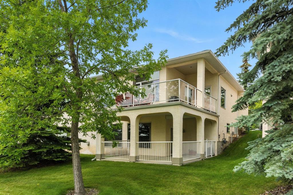 OPEN HOUSE SUNDAY OCTOBER 19, 2025 FROM 1-330 PM. Welcome to this beautifully maintained walk-out bungalow villa with over 2300 square feet of developed living space in the prestigious Gleneagles golf course community, offering sweeping views of the fairways and Bow Valley below. From the moment you arrive, you'll appreciate the stunning curb appeal, mature landscaping, and serene setting with no fencing to obstruct the panoramic vistas. Step inside and be captivated by the bright, open design with soaring 10-foot ceilings on the main floor and 9-foot ceilings in the fully finished walk-out basement. Natural light floods the interior thanks to oversized windows and well-placed skylights in both the kitchen and the primary bedroom, creating a warm and inviting ambiance. Beautiful hardwood flooring adds warmth and elegance throughout the main living areas. The entire interior has been repainted and the Duradek vinyl decking is brand new. The layout is ideal for both entertaining and everyday living, featuring a spacious living room with breathtaking views and a cozy gas fireplace, a large formal dining room for hosting memorable dinners, and a dedicated main floor office perfect for working from home. The gourmet kitchen is equipped with elegant cabinetry, granite countertops, quality appliances, generous workspace, and direct access to the upper deck-ideal for morning coffee or evening sunsets. The primary retreat offers a luxurious escape with stunning views, a private ensuite, walk-in closet, and plenty of space to relax. The walk-out lower level expands your living area dramatically, offering a bright and airy family room with a second gas fireplace, a beautiful oak wet bar, additional bedrooms or flexible spaces for a home gym or guest suite, a second full bathroom, and access to the private lower patio and open green space beyond. All bedrooms feature walk-in closets, providing excellent storage and comfort. Designed for low-maintenance living without sacrificing luxury, this home is ideal for those who appreciate quality, space, and a truly exceptional setting. The double attached garage provides secure parking and extra storage, while the peaceful, friendly neighborhood offers quick access to golf, scenic pathways, natural reserves, and a short drive to all the amenities of Cochrane or Calgary. This rare offering combines thoughtful design, pride of ownership, and an unbeatable location-don't miss your chance to own in one of the area's most sought-after communities with no age restrictions.