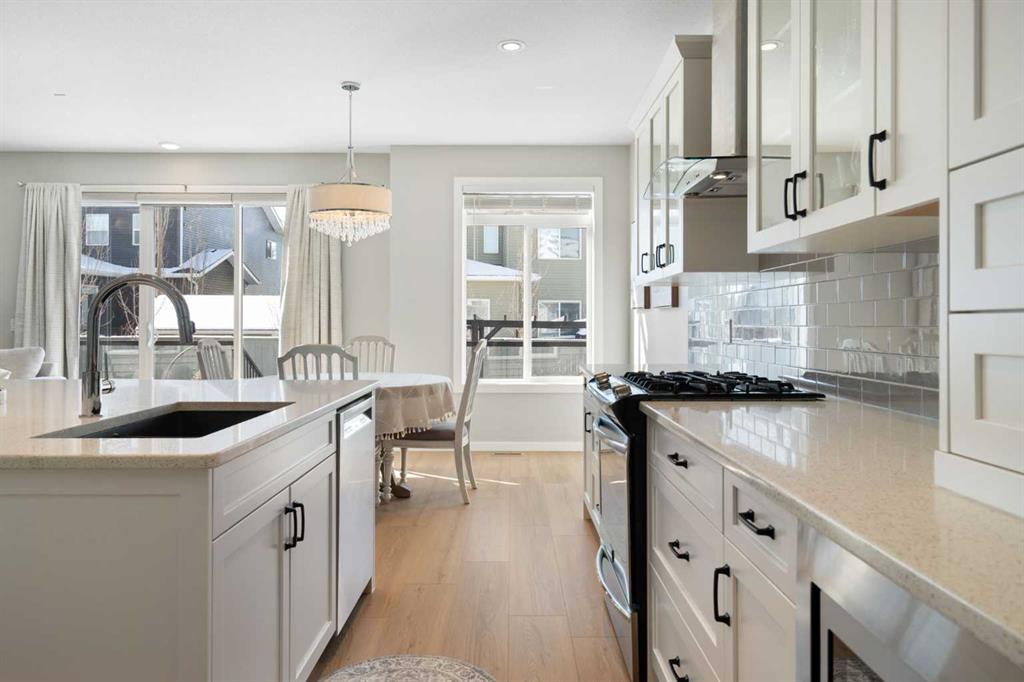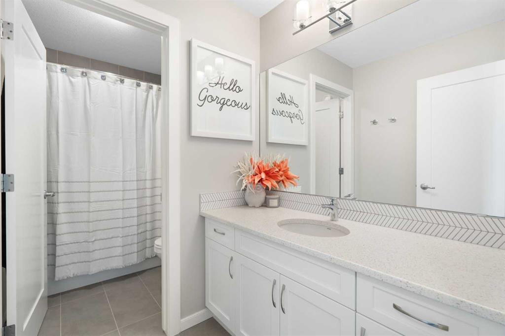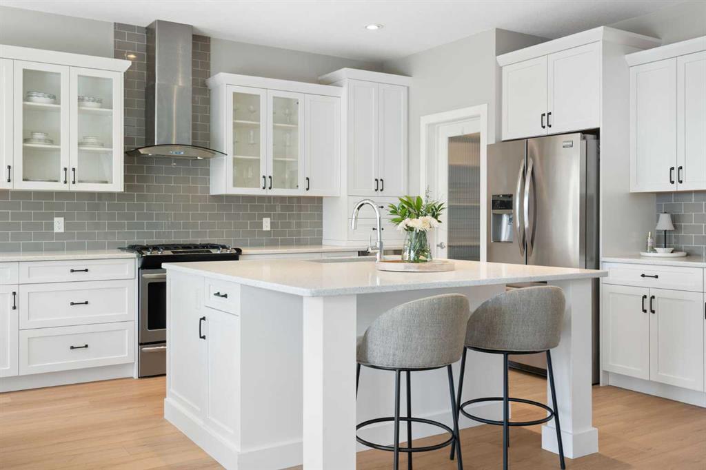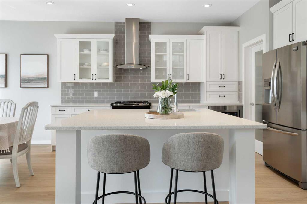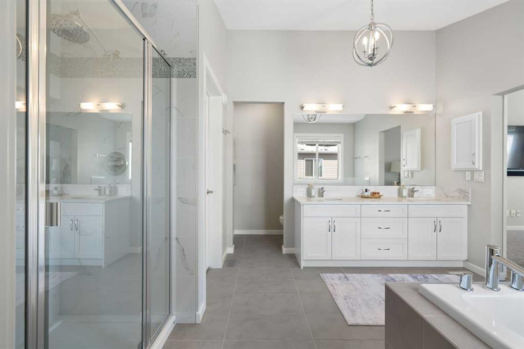 Hello, Gorgeous! Welcome to this beautifully maintained two-storey family home offering over 2,616 sq ft above grade in the desirable community of Bayside. Thoughtfully designed for comfortable everyday living, this home features 4 bedrooms, 2.5 bathrooms, and a spacious bonus room upstairs, creating the ideal layout for growing families. The bright main floor offers a welcoming foyer, a dedicated office with upgraded glass inserts, and an open-concept kitchen, dining, and living area anchored by a cozy fireplace. The kitchen provides ample prep space, a pantry, and a seamless flow into the dining area, perfect for both daily meals and entertaining. Upstairs, the generous primary suite includes a walk-in closet, vaulted ceiling and a relaxing 5-piece ensuite, while three additional bedrooms, a full bathroom, and convenient upper-floor laundry complete the level. The basement is partially developed with a large gym area and plenty of storage, offering great flexibility for future development. Outside, the fully landscaped backyard with many trees creates a private setting to relax or entertain, complete with a hot tub (2018) and pergola. Additional highlights include new flooring, central air conditioning, and Gemstone exterior lighting with remaining warranty. Located on a quiet street in one of Airdrie’s most loved communities, Bayside offers scenic canals, pathways, parks, and easy access to schools, shopping, and amenities. This is a wonderful opportunity to own a spacious, move-up family home in an established neighbourhood.