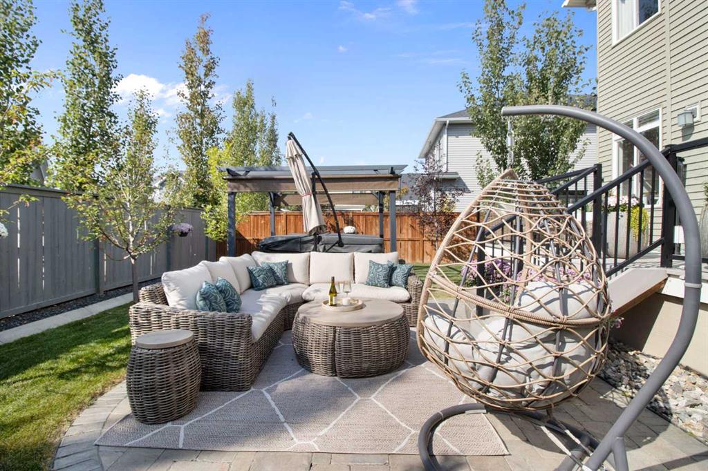 Hello, Gorgeous! Welcome to this beautifully maintained two-storey family home offering over 2,616 sq ft above grade in the desirable community of Bayside. Thoughtfully designed for comfortable everyday living, this home features 4 bedrooms, 2.5 bathrooms, and a spacious bonus room upstairs, creating the ideal layout for growing families. The bright main floor offers a welcoming foyer, a dedicated office with upgraded glass inserts, and an open-concept kitchen, dining, and living area anchored by a cozy fireplace. The kitchen provides ample prep space, a pantry, and a seamless flow into the dining area, perfect for both daily meals and entertaining. Upstairs, the generous primary suite includes a walk-in closet, vaulted ceiling and a relaxing 5-piece ensuite, while three additional bedrooms, a full bathroom, and convenient upper-floor laundry complete the level. The basement is undeveloped with a large gym area and plenty of storage, offering great flexibility for future development. Outside, the fully landscaped backyard with many trees creates a private setting to relax or entertain, complete with a hot tub (2018) and pergola. Additional highlights include new flooring, central air conditioning, and Gemstone exterior lighting with remaining warranty. Located on a quiet street in one of Airdrie’s most loved communities, Bayside offers scenic canals, pathways, parks, and easy access to schools, shopping, and amenities. This is a wonderful opportunity to own a spacious, move-up family home in an established neighbourhood.