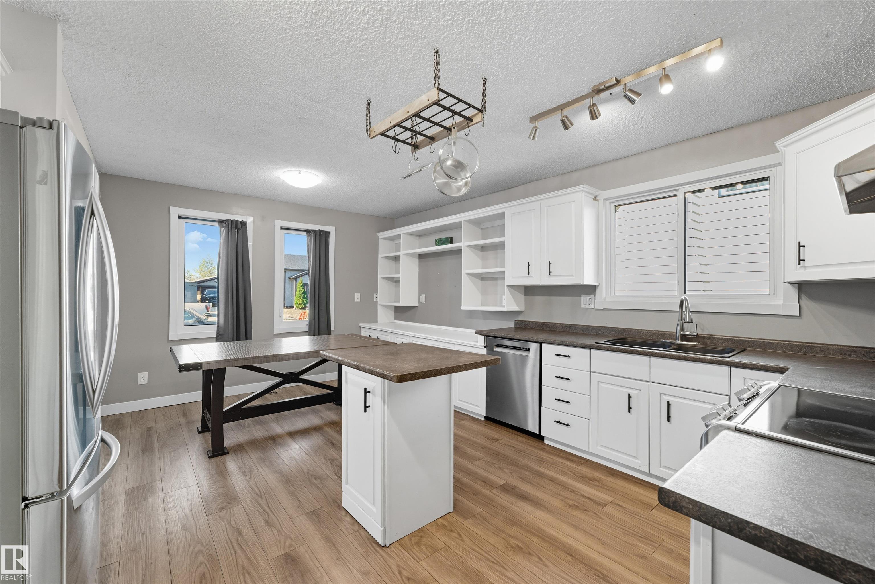 Updated 4 Level Split with an impressive 31.5’x27.5’ HEATED+OVERSIZED double garage/shop/man-cave and extra/RV parking. Major updates done: shingles & siding (2015), New windows/doors installed (2025), Central AC (2024), NEW 8' overhead garage door (2025). Step inside to bright, refreshed living with updated flooring and a modernized kitchen featuring an island, white cabinetry, stainless appliances, granite sink, and newer fixtures. The dining area flows into a spacious living room highlighted by an oversized bay window. Upstairs you’ll find three generous bedrooms, including a primary bedrm with 3 pc ensuite, plus a beautifully redone 4 pc bath with deep soaker tub. Third level offers a massive family room with a stone-faced wood-burning fireplace and a 2 pc bath. The f-finished basement features a dry bar, 4th bedroom, mechanical, and tons of storage space. High-efficiency furnace and hot water tank recently upgraded. Private fully fenced yard with a gazebo and shed. Steps from school and childcare.