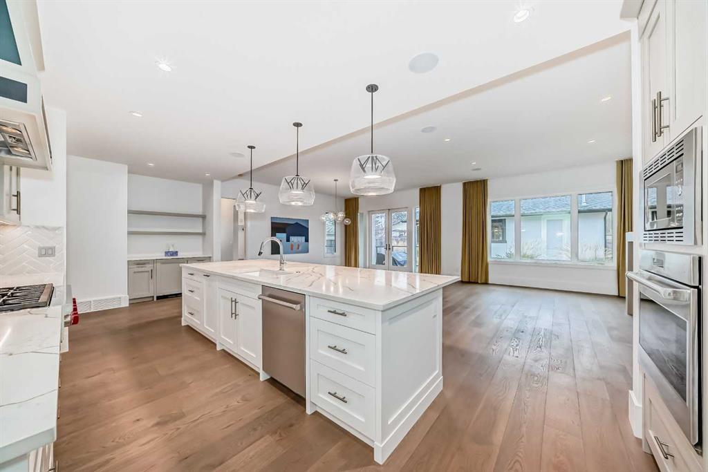 Welcome to this exquisite custom Maillot home, nestled in coveted upper Elbow Park, just steps from the expansive River Park pathway and William Reid French Immersion School. With over 5,000 sq.ft. of beautifully designed living space, this 6-bedroom, 6-bathroom home offers the perfect balance of modern elegance and family functionality. Upon entry, you’ll be greeted by an open, airy floor plan featuring 10’ ceilings, elegant light fixtures, and polished chrome details. The chef-inspired kitchen, equipped with top-of-the-line Wolf and Sub-Zero appliances, is the heart of the home. The spacious great room, with its cozy gas fireplace, and adjoining dining area make this space ideal for both relaxed family living and sophisticated entertaining. A large mudroom and walk-through pantry lead directly to the kitchen, making meal prep a breeze. The main level also includes a convenient den, perfect for a home office or dining room. Upstairs, the second level boasts 4 generously sized bedrooms, each with ample closet space, along with a cozy sitting area and a full laundry room. The opulent master suite features a luxurious 5-piece ensuite, complete with a steam shower and in floor heating for ultimate relaxation. The lower level is designed for fun and relaxation, with radiant in-floor heating, a large family room, full bar, private powder room, and 2 additional bedrooms that share a Jack & Jill bath. Outside, the west-facing backyard is fully landscaped and features a covered deck with a motorized awning, offering the perfect space to unwind. The oversized triple garage is heated, with an EV charger and ample storage space. Additional highlights of this home include double air conditioning units, 8” white oak engineered hardwood flooring, a Hans Grohe/Grohe/Brizo plumbing package, and triple-glazed windows throughout. With its prime location, elegant finishes, and family-friendly design, this home is truly a must-see.