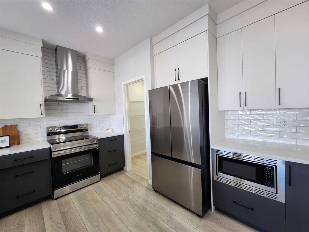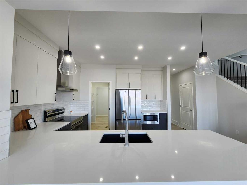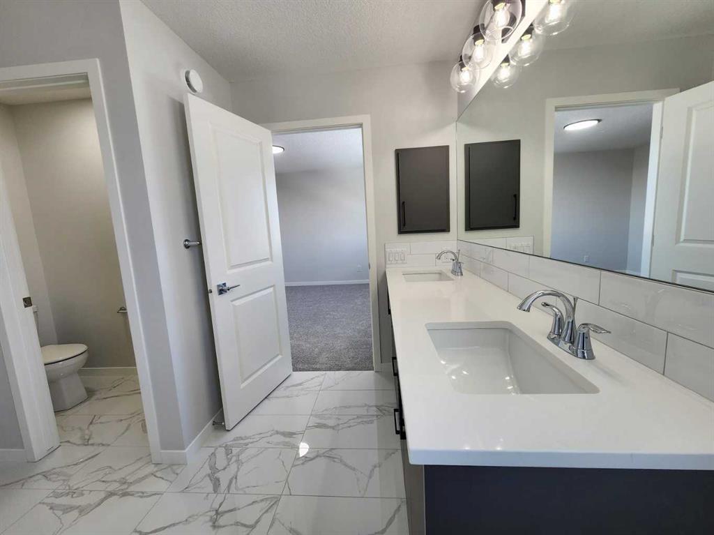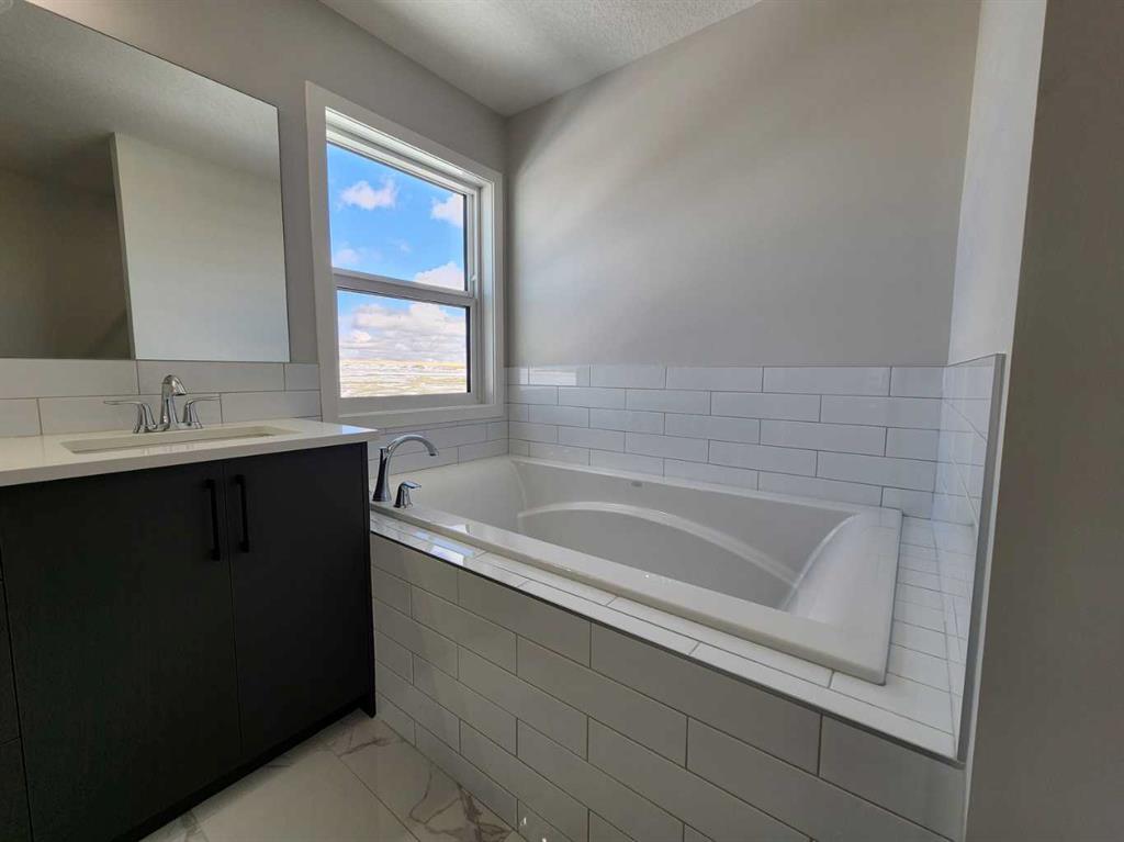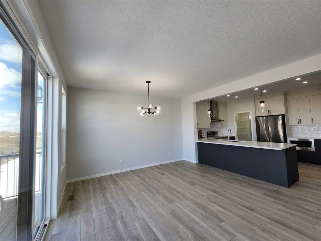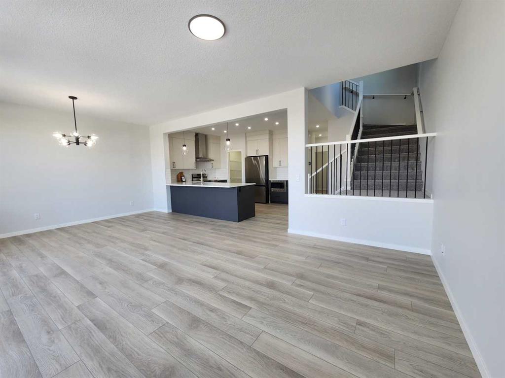 View, View, View! Back on the pond, on a conventional lot (not zero lot), and fully upgraded, welcome to this brand new single family home in popular Livingston. It features 2257 sqft, 4 bedroom up plus main floor den, 24x10 full size deck, 9 feet ceiling on the main floor, quartz counter tops in the kitchen and bathrooms, knock down ceiling, wrought iron spindles on the stairs, upgraded stainless steel appliances and chimney hood fan, 2 tone colors full height cabinets, and LVP flooring throughout the main floor. Upper floor with 4 bedrooms, large master bedroom with beautiful view, ensuite with double vanity sinks, separated shower and bathtub, and large walk in closet, bright and large bonus room with big window, functional compartment main bathroom, and laundry room with window. Main floor with large and bright living room, large sliding doors and glass panels, open kitchen, spacious dining area, and large walk through pantry. Basement with separated entrance has 2 windows and future bathroom rough it. It backs on the pond, closes to playground, future school, shopping, and easy access to major roads. **364 Herron Landing NE **
