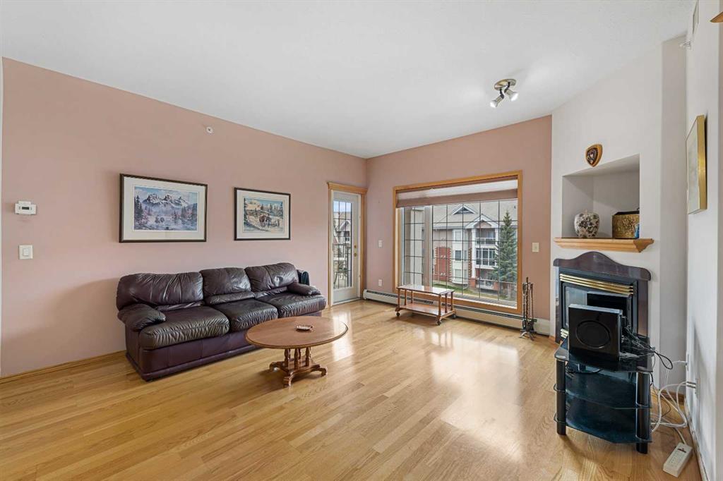 Welcome to The Sierra’s Of Tuscany This prestigious complex, designed for active 40+ adults offers resort style amenities and a vibrant social calendar! This top floor, beautifully maintained, spacious unit boasts an open-concept main living area with large windows, a gas fireplace and beautiful hardwood floors. The primary retreat offers a walk in closet and comfortable ensuite while French doors opening into a nice sized secondary bedroom or flex space. In suite laundry, a full second bathroom and extra storage in the unit add to the comfort and functionality of this home. Step outside onto your private balcony, which has been upgraded with a sprinkler system to expedite enclosure installation, should you wish to pursue a three season sunroom in the future. With underground, heated and secure parking with even more additional storage for your seasonal items helps ensure your lifestyle here is simplified and stress free. The desirable complex is situated in close proximity to the Tuscany LRT station and boasts an abundance of amenities on site including an indoor salt water pool, bowling alley, movie theatre, billiards, an arts & crafts room, a woodworking studio, car wash, ball This functional layout has been lovingly maintained by original owners and offers a sizeable primary bedroom. Beyond the private ensuite is a large walk in closet. Through the French doors off the living room, a generous secondary bedroom may serve as a creative home office workspace. You’ll appreciate the in-suite laundry room large enough to offer extra storage space as well as an additional 3 piece main bathroom. Beyond the living room, the outdoor patio space has been proactively outfitted with a sprinkler system. This upgrade allows a future development possibility of glass enclosure conversion to a three season sun room. The entire unit is build for comfort in a complex designed to cater to mature, active adults. Secure underground, heated parking will keep your vehicle safe and warm through the colder months and is equipped with a convenient car wash bay, while a storage unit keeps all your seasonal goods securely tucked away while still being easily accessible. The Sierra's of Tuscany is a phenomenal 40+ adult living community featuring an abundance of resort-style amenities including an indoor pool, hot tub, billiards room, a library, gym, movie theatre, bowling alley, woodworking and arts and crafts room. The Panorama Room and ballroom can facilitate large social events while guest suites are available to rent to accommodate your out of town visitors. With a robust social and events calendar, this complex fosters a strong adult community and although you won’t want to leave; for moments when you must, transport is a breeze with quick access to Crowchild and Stoney Trail & the Tuscany LRT Station located just across the road. These generously-sized 2 bedroom units are seldom offered in this amazing complex so call your favourite realtor to book a showing today!