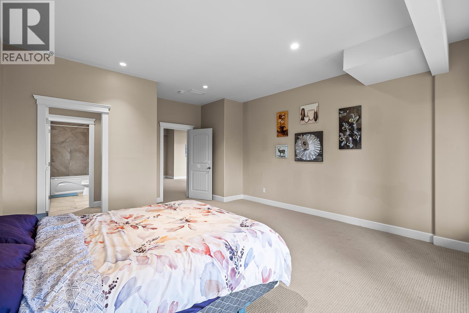 Stunning 4 bedroom, 3.5-bath residence with a dedicated office and recently added theatre room, thoughtfully crafted for comfortable living and effortless entertaining. From the moment you enter, you’re welcomed by breathtaking panoramic views of the city, surrounding mountains, and the tranquil lake, creating an unforgettable backdrop throughout the home. The bright, contemporary kitchen is a true centerpiece, showcasing granite countertops, stainless steel appliances, and an oversized island ideal for cooking, hosting, and gathering with family and friends. The open-concept design connects the kitchen to the dining and living areas, flowing seamlessly onto a covered patio for convenient year-round enjoyment. The spacious primary suite offers a private retreat, complete with its own deck, generous walk-through closet, and a spa-inspired ensuite featuring a steam shower and jetted soaker tub. The lower level expands your living space with two additional bedrooms, a versatile recreation area with wet bar, and a newly added bedroom with a full ensuite, perfect for guests or extended family. A recently converted theatre room provides the ultimate entertainment experience and can easily adapt to suit your needs. Outdoors, beautifully landscaped gardens, multiple decks, and a welcoming front patio with pergola create inviting spaces to relax and unwind. Meticulously cared for and move-in ready, this exceptional home showcases true pride of ownership inside and out.