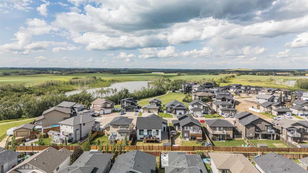 WOW WOW WOW! This STUNNING 2022, 1,883 sq ft two storey True-Line Kinsmen Dream Home floorplan located at 37 Arrowwood Close in Blackfalds will be sure to impress you. There is so much detail in this home you are bound to fall in love. Your new home is located in Aspen Lakes which you have access to the Trans Canada trail system right out your front door that you are able to enjoy year-round, just check out the drone photos! Stepping inside, you will be greeted by the warm colors of this home, large front entry and woodwork throughout this home. Everything about 37 Arrowwood close is impressive including the black railing, the soaring beamed ceiling, and large windows allow for a ton of sunshine with the south facing backyard. The kitchen is functional looking onto to living room and gas fireplace. All countertops in this home are quartz and the flooring on the main floor is all luxury vinyl plank, they really didn’t leave anything out on this property! The main floor laundry comes off of the heated garage and there are two bedrooms as well as a bathroom. The upper floor is consists of the primary bedroom and amazing ensuite with a dual vanity, soaker tub, floor to ceiling tiled shower & walk in closet. The office overlooks the main floor creating a sense of openness! Your new home is fully fenced, has A/C, HEATED GARAGE, COMPOSITE DECKING & great neighbors!