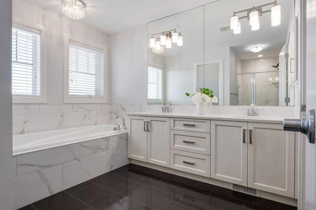 Welcome to this stunning detached 3 storey in Harmony, Springbank’s premier lake community—just 8 minutes from Calgary. Perfectly situated on one of the area’s most desirable streets, this home impresses from the start with its striking exterior design, lush landscaping, and timeless curb appeal. Inside, the main floor is designed for both everyday living and stylish entertaining with 9 ft ceilings and beautiful hardwood floors. The spacious living room features a cozy gas fireplace, while the adjacent den offers flexibility as a home office, playroom, or creative space. Host dinner parties in the formal dining room, or gather around the show-stopping kitchen—complete with quartz countertops, stainless steel appliances, a large island with breakfast bar seating, and abundant cabinetry. A casual dining nook and hidden walk-in pantry ensure both elegance and functionality. Beyond the mudroom, step outside to a west-facing backyard with a cedar deck, fire pit, and triple detached garage that is insulated with a gas line, shelving and full electrical panel. It even has a foundation to potentially build a carriage suite on top (subject to approval and permitting by the city/municipality)! Thoughtful details like a stylish powder bath with designer wallpaper and plenty of storage closets make this floor as practical as it is beautiful. Upstairs, a versatile flex space connects to the serene primary, where a walk-in closet and spa-inspired 5-piece ensuite await—featuring dual quartz vanities, a soaker tub, and a separate enclosed shower. Two additional bedrooms share a Jack-and-Jill bathroom, while a spacious laundry room with storage keeps everything organized. The third floor is a retreat of its own, offering a fourth bedroom with ensuite, a generous bonus room, and a private balcony with sweeping north and east views—the perfect spot to enjoy your morning coffee at sunrise. While undeveloped, the sprawling basement offers an additional 1,313.75 sqft of potential living space with rough-in for another bathroom. Recent upgrades include new floors on the main floor and stairs (2024), new Bosch refrigerator (2025), new dishwasher (2025), new dryer (2025) and new Jacuzzi hot tub (2022). Living in Harmony means more than just owning a home—it’s embracing a lifestyle. From lakeside living and world-class golf to endless trails and breathtaking Rocky Mountain views, this community connects you to the people, moments, and experiences that matter most. Don’t miss the chance to make this one-of-a-kind property your next home.