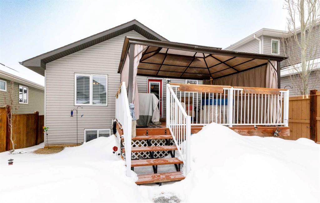 Welcome to this beautifully maintained 4-bedroom, 2-bathroom detached home located in the highly sought-after Ryders Ridge community of Sylvan Lake. Perfectly situated close to schools, the lake, golf course, and scenic walking trails, this home offers an ideal blend of comfort, convenience, and lifestyle. This move-in ready home features central A/C and high-efficiency in-floor heating in the basement, providing year-round comfort. Numerous thoughtful updates have been completed, including a UV electronic furnace filtration system (2025), stove and microwave (2020), new front and back doors (2023), new primary bedroom window (2023), new kitchen and bathroom light fixtures (2025), blinds throughout (2021), new west-side fencing (2024), a 4” x 10” concrete pad in front of the garage (2024), deck staining (2021), roof maintenance completed in 2025, and motion detection lighting at both the back door and garage. The backyard is designed for relaxation and entertaining, featuring a gazebo with hot tub, while the oversized single detached garage is insulated and heated, complete with epoxy flooring your ultimate “Man Cave” or “She Shed” retreat! This space is perfect for a workshop, home gym, hobby zone, storage haven - simply your own private escape.. Located in one of Sylvan Lake’s most desirable neighborhoods, this property is a fantastic opportunity for families, investors, or anyone looking to enjoy the best of what Ryders Ridge has to offer.