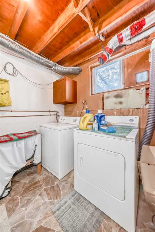 Half duplex in Innisfail featuring 5 bedrooms and 2 full bathrooms, offering a practical layout and versatile living space. The main floor includes a comfortable living room, kitchen with dining area, three bedrooms, upstairs laundry and a full bathroom. The basement is developed with a separate kitchen area, living space, two bedrooms, laundry room and a full bathroom. Situated in a residential area near schools, parks, and everyday amenities, this property presents an opportunity for buyers seeking additional space or potential rental options.