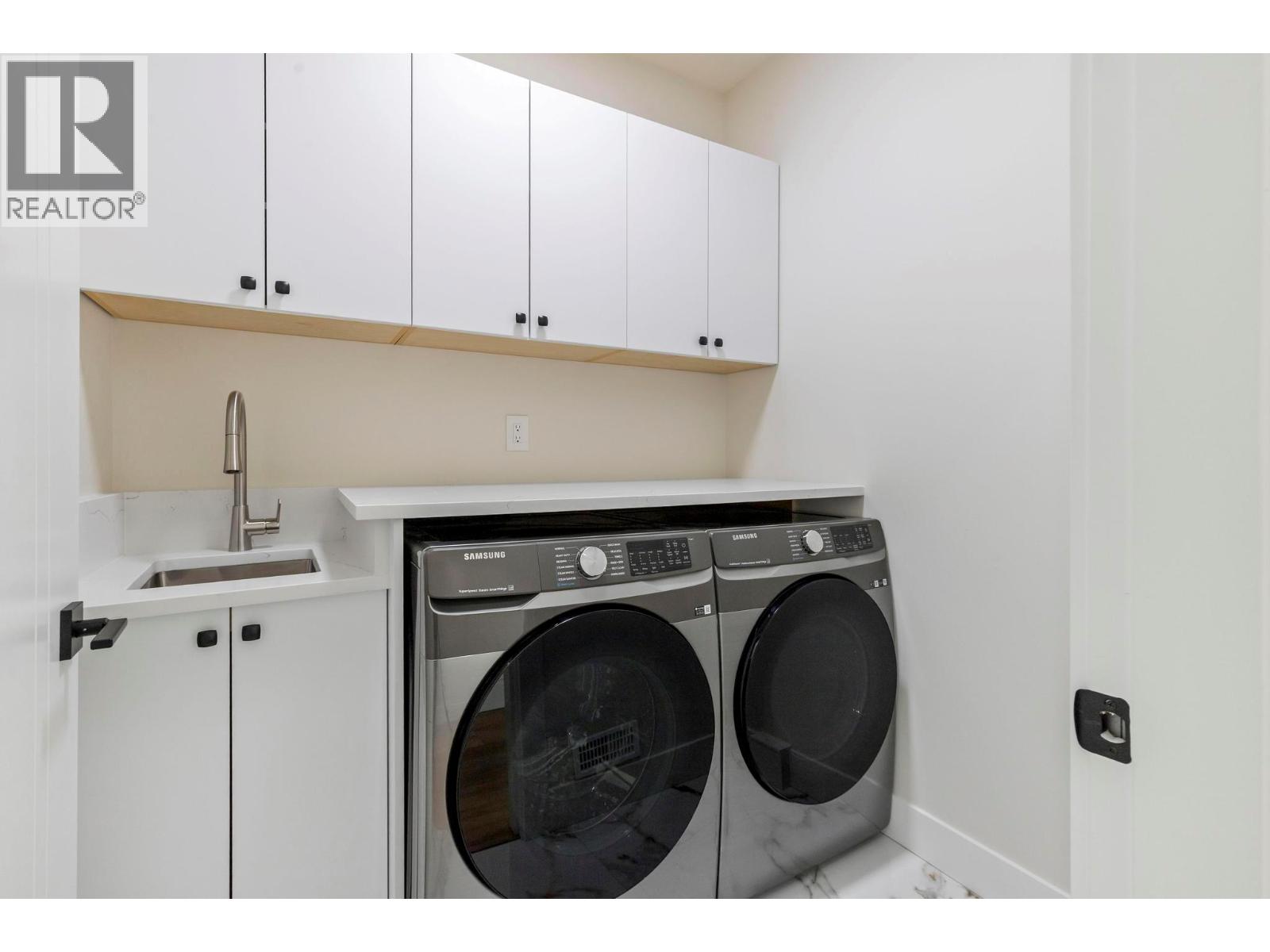 Welcome to The Trails, a stunning new build in one of West Kelowna’s most desirable communities. This 3,248 sq ft, five bedroom, four bathroom contemporary home stands out with its two bedroom legal suite and rooftop patio, offering both lifestyle and long term value. The main floor features an open concept layout with wide plank hardwood floors, quartz countertops, and a feature accent wall that adds warmth and modern character. The kitchen includes stainless steel appliances along with bold black hardware and fixtures. A large mudroom connects to the double garage, providing everyday convenience, while a powder room completes the level. Upstairs, the primary suite delivers a luxurious retreat with deck access, a custom feature wall, walk in closet, and spa inspired ensuite with dual sinks, glass shower, and freestanding tub. Two additional bedrooms, a full bath, and a laundry room with sink complete the upper floor. The bright legal two bedroom suite below offers its own laundry, full kitchen, and private entrance, ideal for extended family or rental income. Enjoy three outdoor decks, including a rooftop patio with gorgeous mountain and valley views, perfect for entertaining or relaxing. The synthetic turf backyard provides low maintenance living that is also great for kids and pets. Additional highlights include Step Code 3 energy efficiency, ample parking and storage, hot water on demand, alarm system, EV ready double garage, and a full blinds package. GST applicable.