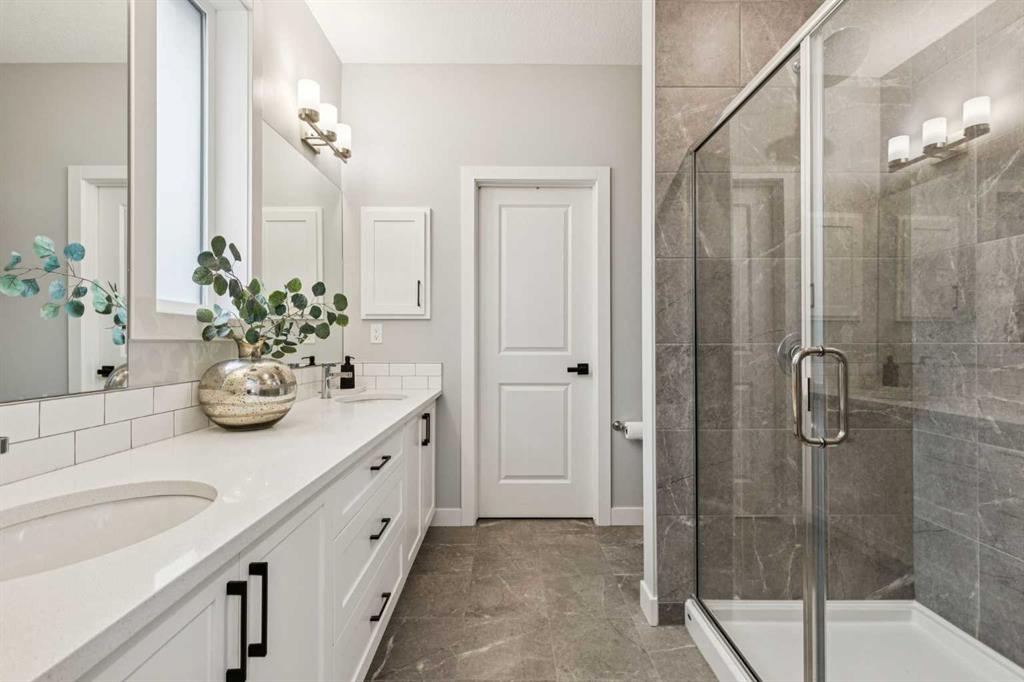 Step into this beautifully designed bungalow offering a perfect blend of style and function. The OPEN-CONCEPT main floor features soaring VAULTED CEILINGS, creating an airy and spacious feel. The kitchen impresses with QUARTZ COUNTERTOPS, a striking FEATURE HOOD FAN, updated tile backsplash, and ample cabinetry — perfect for entertaining or quiet evenings at home. The living room features an ELECTRIC FIREPLACE on a FEATURE WALL making a stunning focus in the room. A stylish MAIN FLOOR OFFICE with a BARN DOOR and custom attachment offers the ideal work-from-home setup. Nearby, the UPGRADED LAUNDRY ROOM boasts a countertop, SHELVING, and CABINETRY with UPGRADED TILE. The elegant half bath showcases a SLATTED ACCENT WALL, QUARTZ COUNTERS, and UPGRADED FIXTURES. The primary bedroom is a true retreat with a generous WALK-IN CLOSET and a spa-inspired ENSUITE featuring DUAL SINKS and a fully TILED SHOWER. Downstairs, the FULLY FINISHED BASEMENT offers a cozy family room with a FEATURE WALL and DRY BAR, two additional bedrooms, and a modern 4-piece bathroom — perfect for guests or family. Step outside to your WEST-FACING backyard oasis. Enjoy a TWO-TIERED DECK with PRIVACY WALL in the PERGOLA with a ROOF, BUILT-IN BENCH, and beautiful landscaping including florals and a PAVING STONE PATHWAY — all while taking in scenic views of Cochrane. This home blends high-end finishes with thoughtful design in one of Cochrane’s most desirable communities. Don’t miss it!