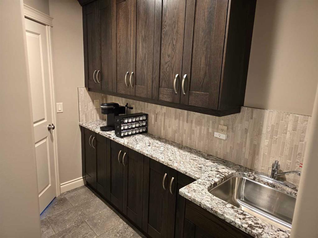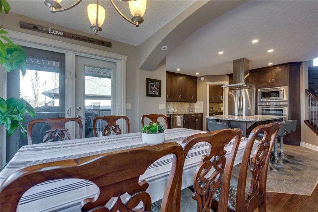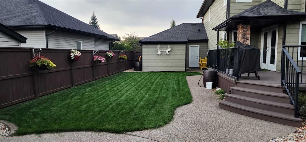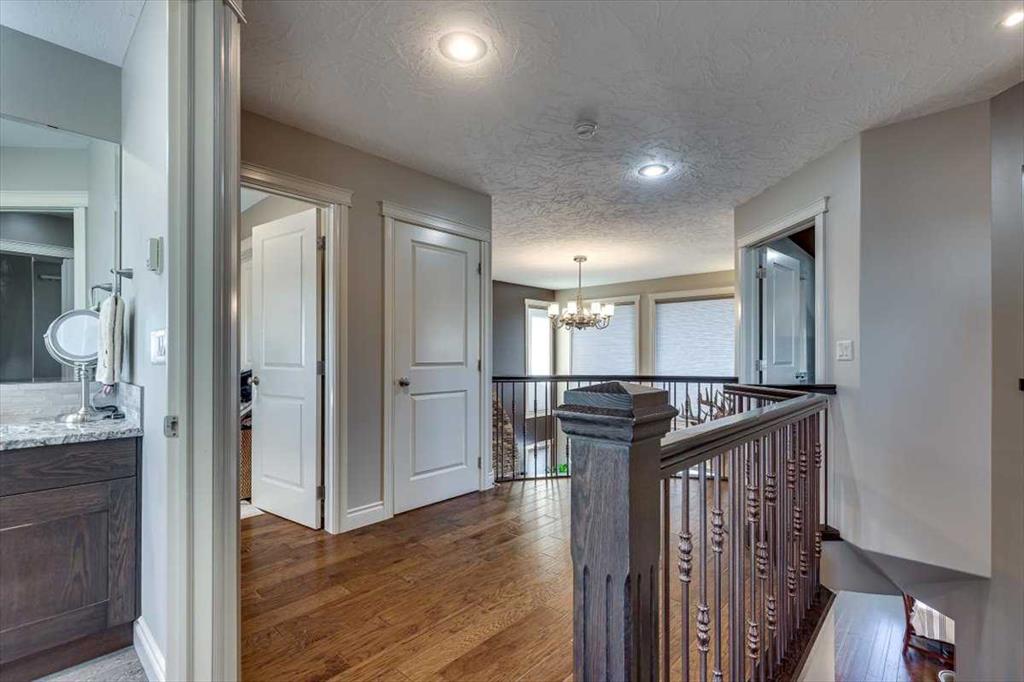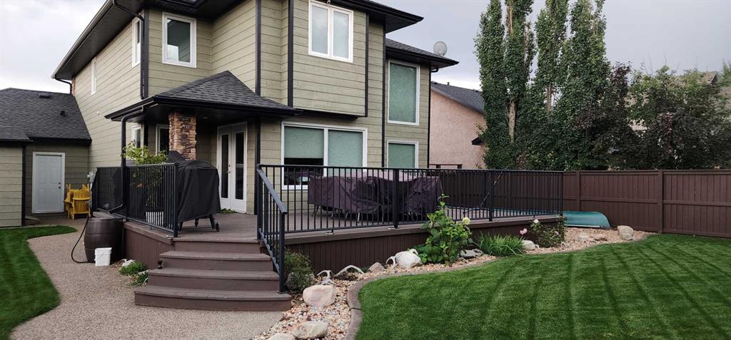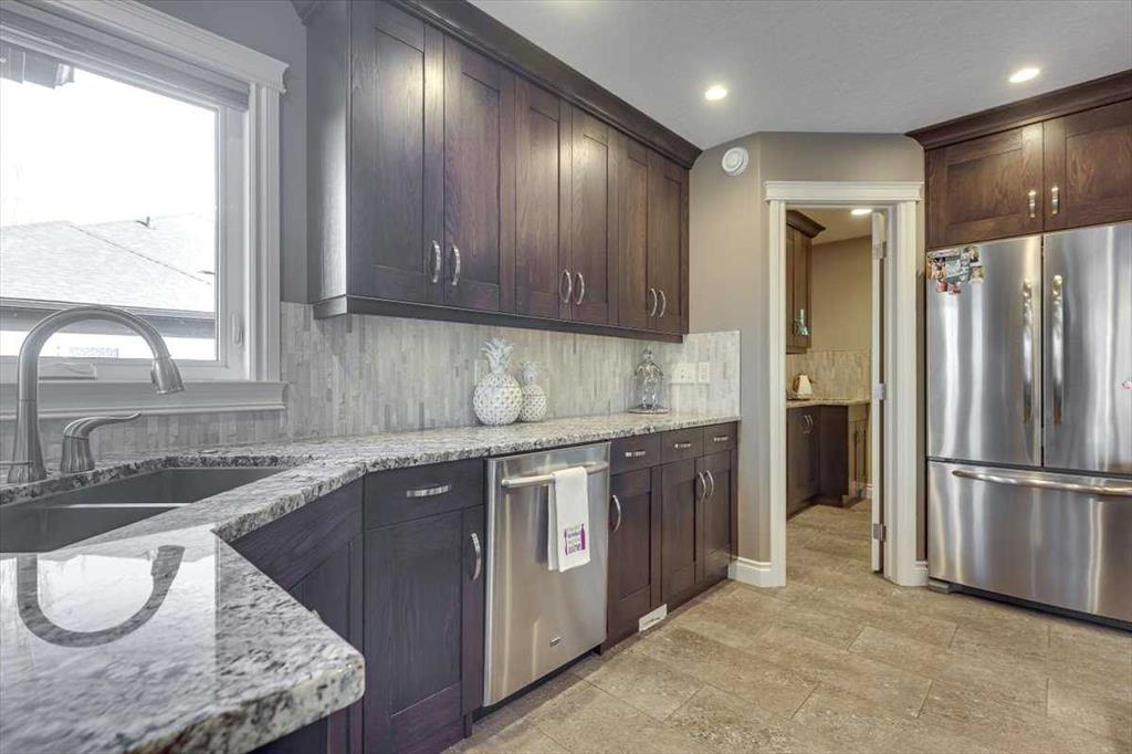 Beautifully finished 2 Storey home, tucked away in a peaceful community, with a Triple Attached Garage, and backing on to the picturesque walking trails of Elizabeth Park. Upon entry, you are greeted by a tiled foyer, nicely appointed Den/Office that comes with a sink, and gorgeous built in cabinetry. Further on in, you will be immediately drawn to the flood of natural light throughout the 2 Storey living room, vaulted ceiling, accented by the stone finishing on the fireplace from floor to ceiling. Plenty of high end finishes in the kitchen, including quartz countertops, soft-close drawers, full tile backsplashes, large kitchen island, and walk-through pantry with a prep sink. The dining room is surrounded by more windows, and provides access to the huge deck, partially covered, with Gas hookup for the BBQ. The back yard also includes a garden shed with siding and finishes that match the house, along with a concrete path & pad for the firepit area. The main floor also includes a 2 piece bathroom, and of course access to the heated Triple Attached Garage, which also has a separate entrance into the back yard. Upstairs features an area overlooking the living room, convenient laundry room next to the bedrooms, a 5 piece main bathroom with dual sinks, along with 3 bedrooms. The primary bedroom is an oasis, with a couple of windows overlooking the living room, and 5 piece ensuite that features a pedestal tub with tile surround, dual sinks, nicely tiled shower, and walk in closet. Downstairs features a recreation area set up for pure entertainment, with full wet bar, a feature nook, the fourth bedroom currently set up as a gym, and a 3 piece bathroom with steam shower! Additional features include LED lighting throughout, efficient in-floor heating serviced by a boiler system, oversized H/W tank, and water softening equipment. Recent upgrades include newly installed A/C, the in-floor heating system has been flushed and new glycol installed, and the cushion tanks, PSV's and zone valves have been replaced. Washer & Dryer, and the induction stove top in the kitchen were replaced about 2 years ago.