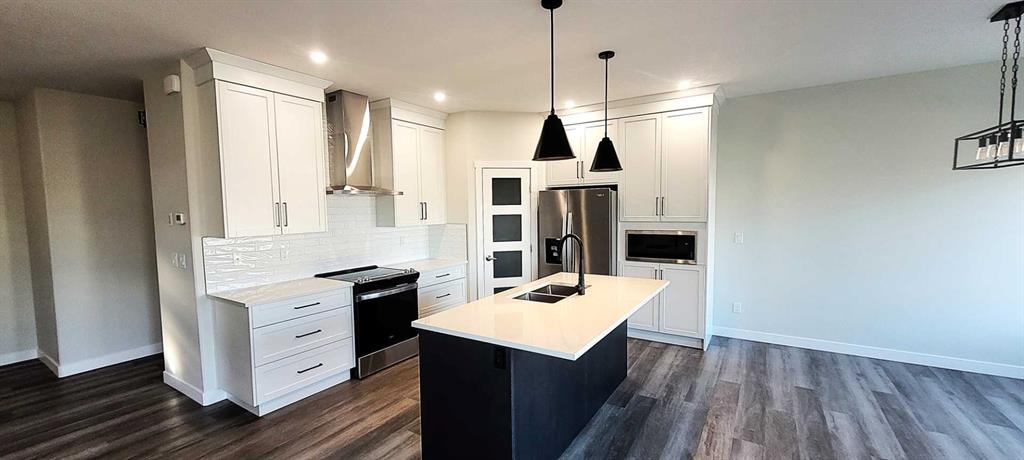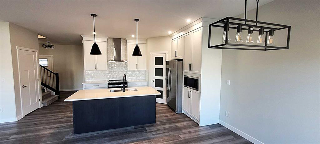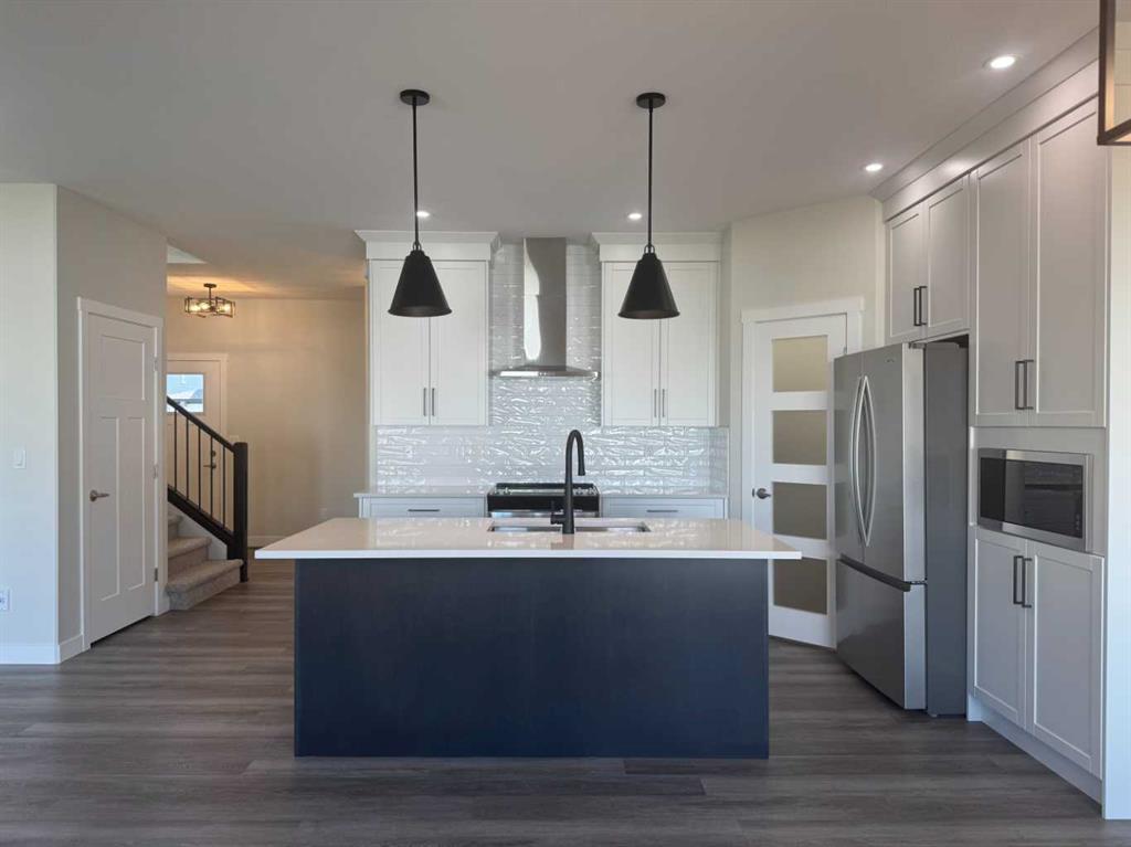 WELCOME TO THIS IMPRESSIVE TIMBERLANDS NORTH NEW BUILD TWO STOREY WITH UPPER LEVEL BONUS ROOM! A stunning home with exceptional curb appeal! Enter to 9 ft ceilings and luxury vinyl plank flooring on the main level flowing through to the WEST FACING Combination Living/Dining/Kitchen! Eye-catching fireplace in the living room with a gorgeous floor to ceiling cream accented stone surround! The kitchen is a culinary haven with white cabinetry elevated to ceiling height, wall mounted range hood, a separate 'in cupboard installed microwave", quartz countertops, center island with extended breakfast bar, pantry and all stainless steel appliances included....Super sized dining area, adjacent to the kitchen, which has a garden door out to the rear west facing deck with metal railings... Completing the main level is the good sized laundry room with coat rack and bench and a separate 2 pce washroom. Continuing to the upper level, we have the BONUS ROOM, a very good sized Primary Bedroom with a magnificent oversized walk in closet and 3 pce ensuite with quartz countertop, dual sinks, tile floor and 5 ft shower with full tile surround. Next the two very spacious secondary bedrooms and the 4 pce main bath with quartz countertop and tile floor... The basement is open for development and roughed in for infloor heat....TAXES NOT YET ASSESSED....(Note: this home is in the final stages of finishing and clean up. The photos attached to this listing are of the interior of 49 Emmett Crescent in Evergreen which can be visited to view the finished product.... light fixtures may vary in 38 Tagish.....