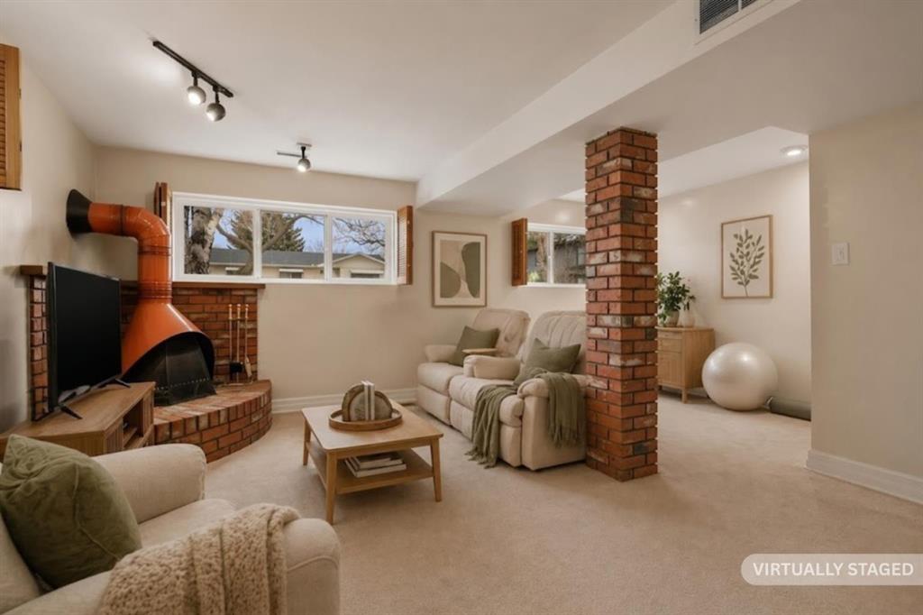 Classic mid-century charm in Brentwood!!! This 5 bedroom, 3 bathroom home, with over 2200 square feet of living space, has been meticulously (as in floors scrubbed with nail brushes meticulous) maintained and updated since its construction in 1960. The community itself is highly sought after due to its proximity to all of your essential amenities, major transit routes, the University and hospital, and quick access to the downtown core. Brighton Drive is tucked quietly away, and just off Charleswood, putting most of these things within walking distance. From the moment you step inside, the character of this home shines through. The main level showcases original hardwood flooring and a beautifully preserved contoured ceiling finish, capturing the essence of mid-century style. Bay windows open to a large front yard and mature trees, featuring the wide neighbourhood streets found only in these older heritage communities. The spacious family room is anchored by a true statement piece—an original Preway Freestanding Porcelain Enamel Finished Fireplace in the brand's iconic Aztec Orange, adding warmth and architectural flair you simply won’t find in newer homes.With four fully developed levels, this home provides an exceptional amount of space and flexibility for families of all sizes. The upper level features three generous bedrooms, while the lower levels offer two additional bedrooms plus an office / den or flex space — ideal for any combination of lifestyle and family needs. In total, the home includes two full bathrooms and one half bath, all thoughtfully maintained and updated.Step outside and you’ll discover a beautifully established yard that truly sets this property apart. Mature trees provide privacy and shade, while thoughtfully curated garden beds offer a lush, serene setting for outdoor enjoyment. Whether you’re an avid gardener or simply appreciate a peaceful backyard retreat, this space delivers with seasonal colour, room to relax, and plenty of space for entertaining.Significant mechanical upgrades ensure peace of mind, including a newer roof and windows, plus a furnace and humidifier replaced in 2024. A modern tankless hot water system provides on-demand efficiency and convenience.Completing the property is a massive oversized and over-height double detached garage, equipped with a gas heater—perfect for hobbyists, car enthusiasts, or additional workspace year-round.Located in one of northwest Calgary’s most established neighbourhoods, Brentwood offers unbeatable access to parks, shopping, transit, and the University, making this an ideal opportunity for both families and investors. Several of the rooms have been virtually staged as the home has more space than the current owners have need for.