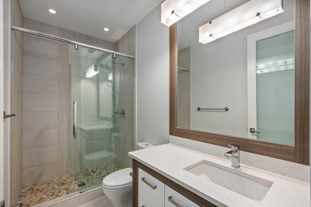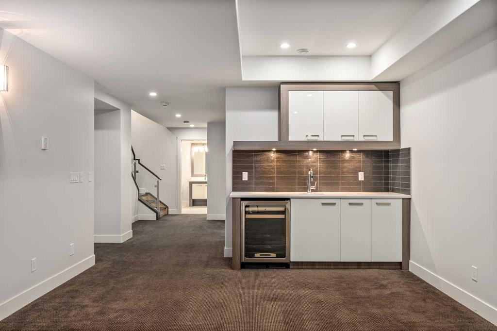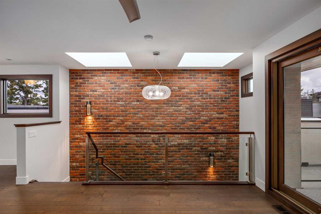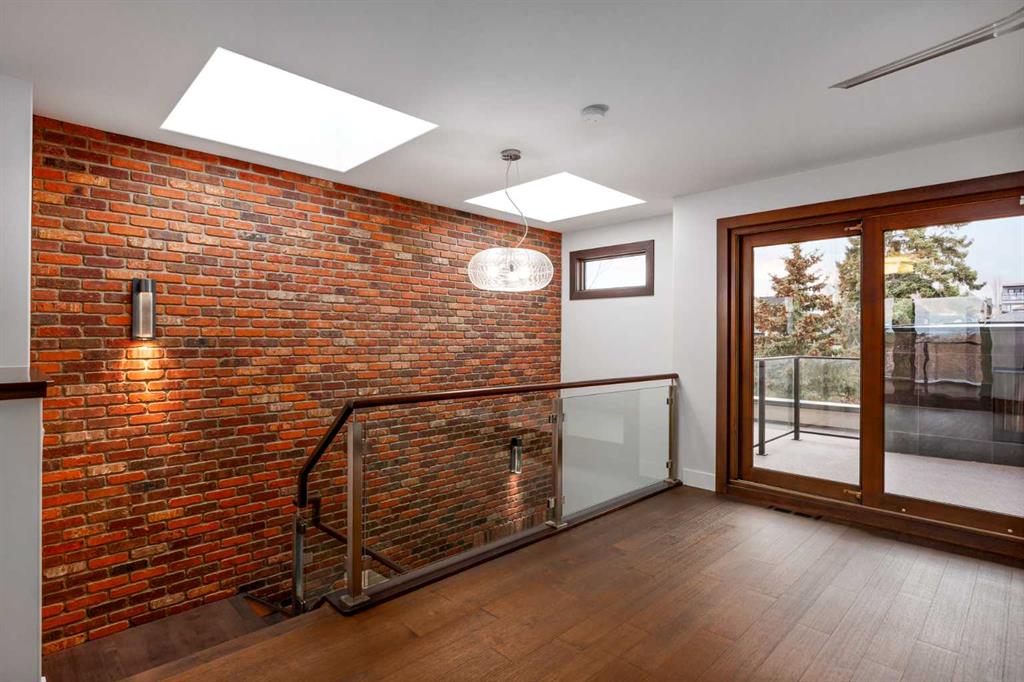 This, renovated, better than new modern home is located in desirable, prestige and secure SW community of Altadore. Contemporary 3 storey , featuring hardwood throughout 3 levels, cool brick wall, 9'ceilings, 8' solid core doors, metal with glass railings, 3 fireplaces, in floor heat and much more. On the main floor you will find open kitchen with Wolf appliances, walk-in-pantry and custom cabinetry, living room with cozy fireplace and sliding door to a spacious patio. Convenient front of the house main floor office. On the second level you will enjoy luxurious master retreat with double side fireplace, tub, steam shower and large walking closet. Convenient laundry room and two additional bedrooms. One level up loft, with 3 skylights, full bath, bar and 2 decks with views and fireplace. Basement is fully finished with bedroom, full bath and huge recreation/ home theatre room and storage room. Air conditioning, under ground sprinklers, insulated garage. Home shows amazing. Just move in and enjoy the Summer!