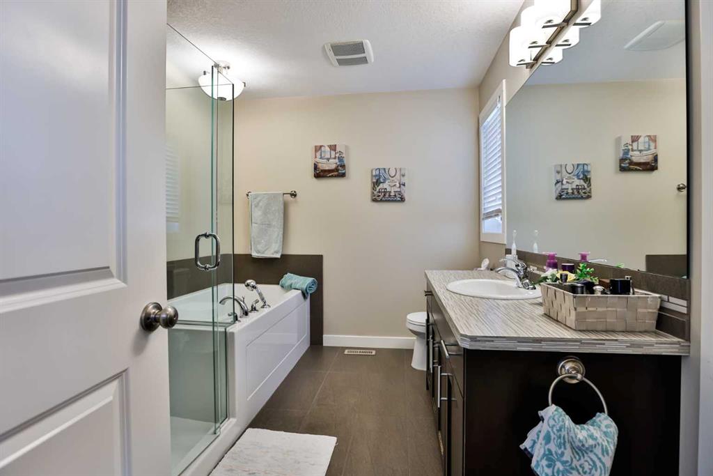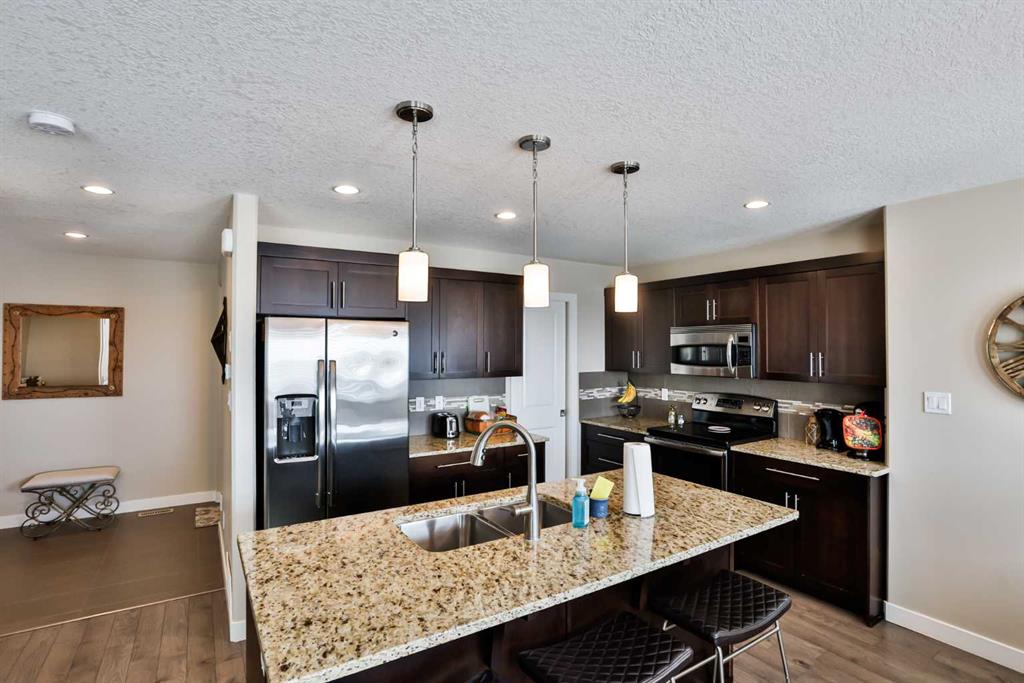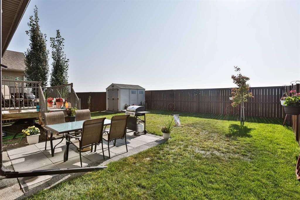Check out this fantastic fully developed 3 bedroom home with mountain views! Located in the Sunridge neighborhood, this home, built by Cedar Ridge Homes, has it all; all of the quality upgrades you would expect to find in a showhome, located on a quiet street close to amenities, backing onto an open field so no back neighbor, and stunning views of the mountains. This home has been immaculately maintained and it shows. The main floor offers a bright open floorplan with beautiful espresso colored cabinets, gorgeous granite countertops, a pantry, and stainless steel appliances. The dining room and living room have large picture windows to take in the expansive view offered by having no back neighbor or development behind the property. The backyard is fully fenced and landscaped. Upstairs offers 3 bedrooms and boasts newer premium carpet with upgraded underlay you can see and feel instantly. The master bedroom has a walk-in closet and ensuite with tiled glass shower and large soaker tub. The basement was professionally finished in 2021 to seamlessly match the rest of the home and adds an additional TV room, storage room, and 3 piece bathroom with a glass tiled shower. The bright white walls, windows, and premium finishes make this a beautiful and comfortable space. The home also has all of the functional features you would want for added convenience like a double attached garage with a gas heater, air conditioning, tankless hot water heater, and a shed in the backyard for additional storage. This is the perfect home with everything you could want, quick possession possible, call your favorite real estate agent today to view.