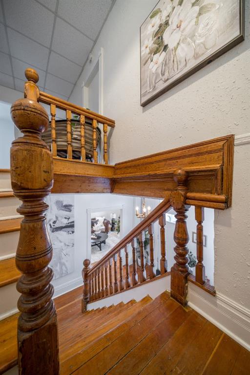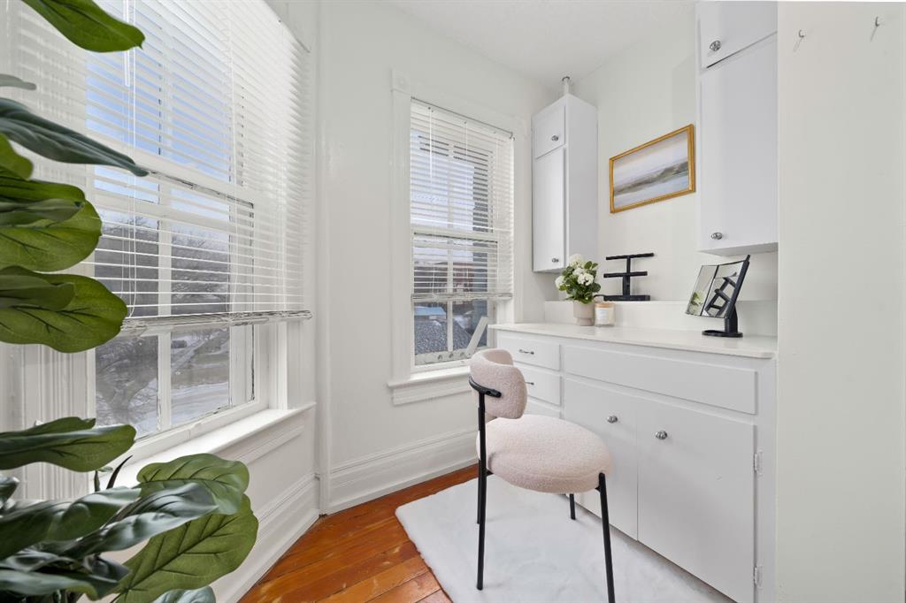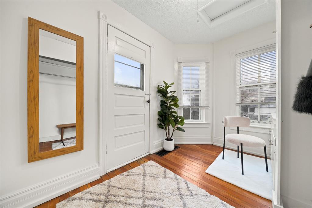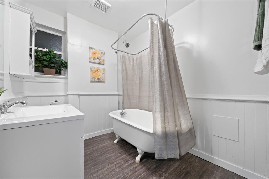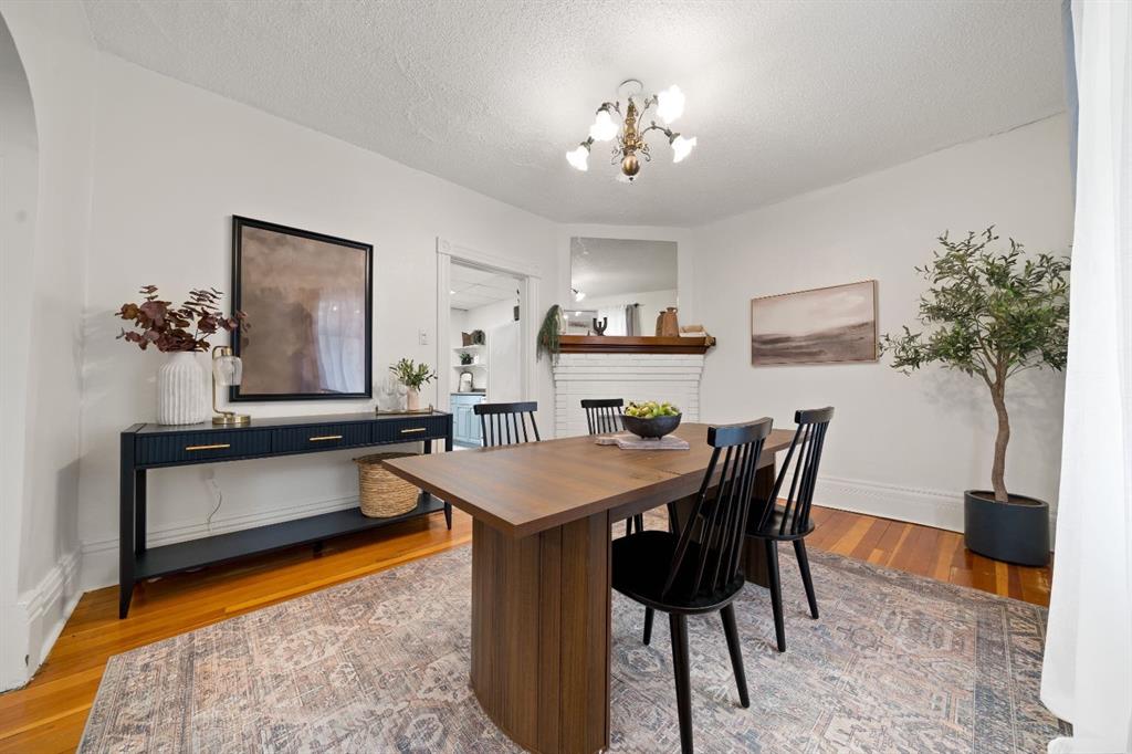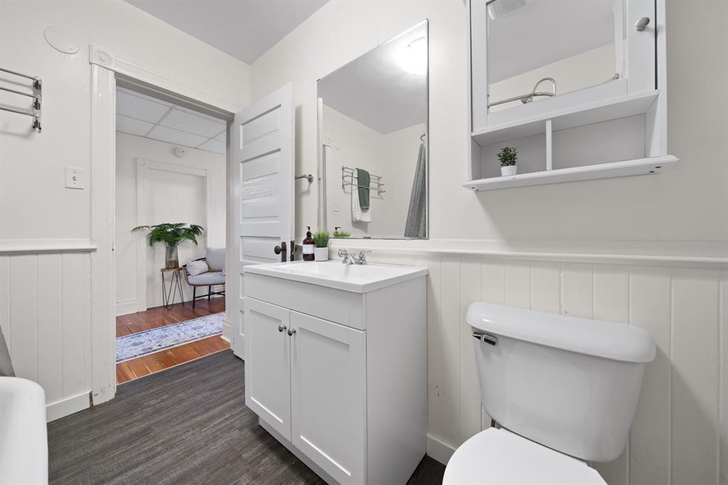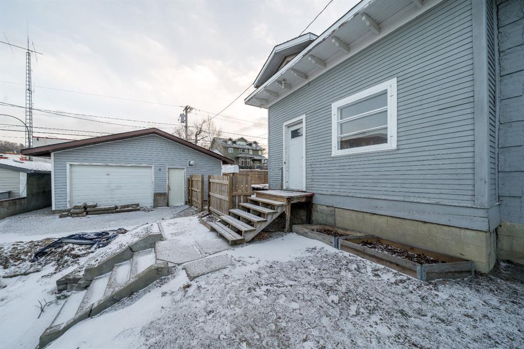 Step into a storybook at this enchanting 1906 character home. With its striking turret and castle like presence, this home is truly one of a kind!! Inside, you’re greeted by a warm and welcoming entryway showcasing the grand original staircase. The main floor flows beautifully through the living room, dining area and upgraded kitchen, making it perfect for both everyday living and entertaining. Upstairs features 2 bedrooms, an office that could easily be used as a bedroom and a 4-piece bathroom with a classic clawfoot tub. The primary bedroom offers a walk-in closet / dressing room with direct access to the patio. The basement provides a large laundry room and additional versatile space ideal for storage, a recreation room, or creative use. At the back of the home, an attached non-conforming suite adds incredible flexibility, complete with one bedroom, one bathroom, and private patio doors opening onto its own deck. Perfect for guests, extended family, or even supplemental income! Completing the property is a heated double detached garage along with ample off street parking for an RV or motorhome . The home is situated on a multi-use lot. Upgrades to the property include a recently updated bathroom, plumbing updates, a newer hot water tank (2022), a high-efficiency furnace (2023). Call your favourite REALTOR® today to book a showing!
