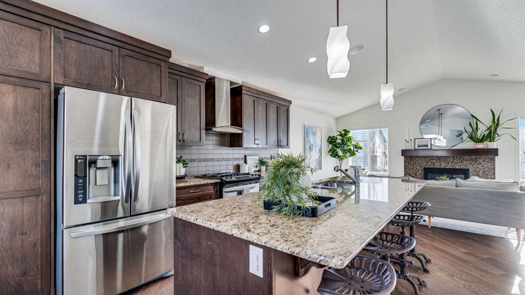 Welcome to 389 Cranberry Circle SE, a thoughtfully designed home where the main living space is elevated to the top floor, creating an exceptional environment for everyday living and entertaining. This upper level is the heart of the home, showcasing vaulted ceilings, a spacious open-concept layout, and abundant natural light pouring in through large windows. The inviting living area features a beautiful gas fireplace framed by two oversized windows, creating a warm and visually striking focal point. A generous dining area flows seamlessly from the kitchen, making it ideal for hosting gatherings both large and small. The centrally located kitchen is designed for entertaining, complete with granite countertops, a gas range, dark cabinetry with ample storage, and a functional island offering additional cabinetry. Just off the dining area, step onto the upper balcony extending your entertaining space outdoors. A convenient 2-piece bathroom completes the upper level, while the home is wired for sound throughout, enhancing both daily living and hosting. The main floor is dedicated to rest and privacy, offering two generously sized bedrooms, each with its own private ensuite and walk-in closet—a rare and highly desirable layout. A thoughtfully designed back entry includes custom cabinetry, hidden storage, and stacked laundry, conveniently located near the bedrooms. The fully developed basement adds versatility, featuring a large third bedroom, a full bathroom, and an expansive recreation area ideal for a home theatre, kids’ play zone, or multi-purpose family space. Outside, enjoy a south-facing backyard featuring a spacious deck and a stamped concrete patio, surrounded by low-maintenance landscaping—perfect for relaxing, entertaining, and enjoying the sun all day. A double detached, insulated garage completes the property. Additional comfort features include central air conditioning and on-demand hot water, enhancing efficiency and year-round comfort. Ideally located close to parks, schools, and shopping, with excellent access to Deerfoot Trail and Stoney Trail, this bright, spacious, and intelligently designed home offers a unique layout that truly enhances how you live and entertain.