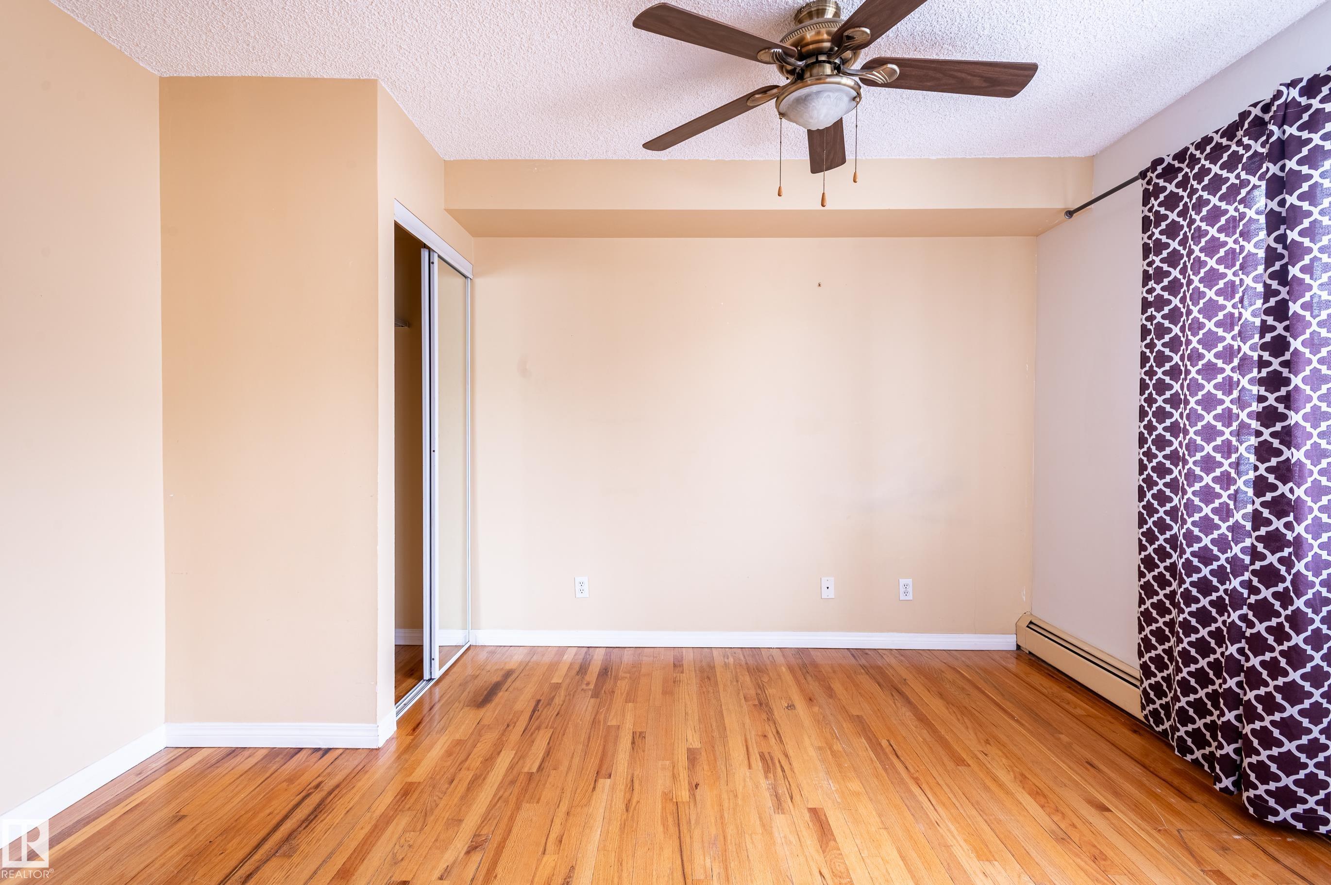Bright and charming in the vibrant neighbourhood of Westmount! This 740 sq.ft second-floor character condo with original hardwood floors is sure to appeal. Features 2 bedrooms, 1 bath, in-suite laundry, and a spacious storage room that could double as a home office. One bedroom opens with French doors into the living space, creating a flexible open-concept feel that flows through the kitchen and out to the west-facing balcony. Enjoy evening light and the convenience of your assigned parking stall located directly below the units balcony. Building has seen major recent updates, including new roof, balconies, and siding. Walking distance to restaurants, cafés, shopping, and on major transit routes. Ideal for first-time buyers or investors. Priced to sell at $109,900