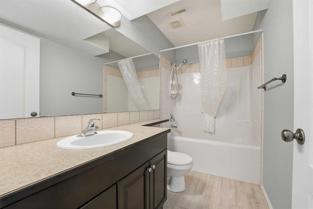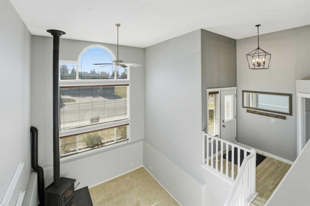 A fully developed bi-level with 2024 square feet of developed space and a detached double car garage on a crescent facing a green space. The curb appeal is accented by the large front windows and covered front porch. The entryway greets you to the unique open style floor plan that is flooded with natural light. Maple kitchen cabinets are accented by crown mouldings, full tile backsplash, stainless steel appliances (nw fridge), pot/pan drawers, some decorative glass front cabinets and a pantry. The large eating area is lofted down to the lower level. There are 2 bedrooms upstairs both with shiplap feature walls. The primary bedroom has a cheater door to the 4 piece bathroom. The basement boasts a family room with a wood burning stove (wett inspection from 2017) that is open to the upper floor and towering stacked windows. There is a games room, a 3rd bedroom, a 4 piece bathroom and a utility room that has a storage area and laundry. The yard features a covered deck with storage underneath, a unistone patio with patio lights strung above, a garden area & a detached double car garage that has a new garage door opener and 220V wiring. The shingles were replaced in August 2025 on the house and garage with 50 year shingles. The large front window is on order to be replaced and the glass in the window with the broken seal above the kitchen sink is also ordered to be replaced. The carpets were all just professionally steam cleaned. A fantastic location on a crescent across from a greenspace and park.