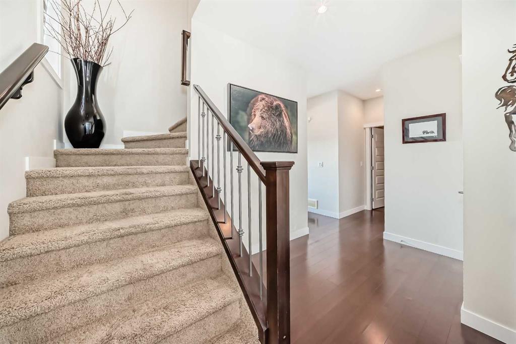 A Rare Find in Williamstown — Backing onto Nature with Beautiful, Peaceful Views! Welcome home to this wonderfully cared-for 2-storey walkout in the friendly community of Williamstown. This is a true gem—backing right onto an Environmental Reserve, with a nice big back yard and you’ll never have to worry about rear neighbours! Enjoy open, west-facing views and quiet evenings surrounded by nature, right from your own backyard. Inside, you’ll find a bright, open main floor that’s perfect for everyday living and entertaining. Gleaming hardwood floors, 9’ ceilings, and a cozy gas fireplace make the living area warm and inviting. The kitchen offers plenty of space to cook and gather, with granite countertops, lots of cupboards, and a large island that’s perfect for snacks, homework, or catching up over coffee. The sunny dining nook looks out toward the reserve, and the adjoining patio is ideal for morning coffees or summer BBQs. A handy main-floor laundry area and a stylish half bath add extra convenience. Upstairs, you’ll love the spacious bonus room with vaulted ceilings and big, bright windows—a perfect spot for movie nights, a kids’ play area, or even a home office. The primary bedroom feels like a retreat, complete with a walk-in closet, vaulted ceiling, and a relaxing ensuite that includes a soaker tub, glass shower, and double sinks. Two more generous bedrooms and a full 4-piece bath complete the upper floor. More features to love: Central A/C to keep you cool in the summer. Gas hook ups, outside, both up and lower levels for your bbq and it is wired for a hot tub on the lower level. Custom roller blinds throughout (blackout or light-filtering options) Epoxy-coated garage floor—durable, clean, and great-looking The walkout basement is partly finished with framing, electrical, and flooring already done—just waiting for your finishing touches to make it your own. This home has everything you need: comfort, space, a peaceful location, and unbeatable views. It’s the perfect place for your family to grow and make lasting memories.