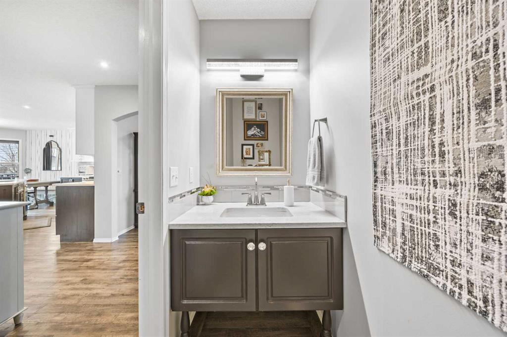 STUNNING MAIN FLOOR RENO + WALKOUT BASEMENT + WEST-FACING BACKYARD OASIS — THIS IS THE ONE YOU HAVE BEEN WAITING FOR!!! Welcome to 390 Cove Road, located in one of Chestermere’s most desirable LAKE communities — known for its PRIVATE BEACH, pickleball courts, and quiet, family-focused atmosphere. If you’ve been waiting for a SINGLE-FAMILY home that gives you real space, real upgrades, and real value… THIS IS IT!! Offering over 2712 SQ.FT. OF FULLY FINISHED living space, a WALKOUT basement and an DOUBLE ATTACHED GARAGE, this home IS READY TO GO!! The main floor has been COMPLETELY RENOVATED and features LVP flooring throughout, a beautifully updated half bath and CUSTOM laundry/mud room that is designed for busy family life with both style and function in mind. And then there’s the kitchen… COMPLETELY TRANSFORMED and absolutely GORGEOUS!! Featuring stainless steel appliances, QUARTZ countertops, a stylish tile backsplash, updated cabinetry, a functional island with breakfast bar seating, and a corner pantry — this is the kind of kitchen buyers get excited about. It flows effortlessly into the bright dining nook and welcoming living area with feature floor to ceiling stone FIREPLACE that creates a stunning focal point and is the perfect layout for everyday life and entertaining. Step outside and you’ll see why this home truly stands out. The WEST-FACING backyard has been fully upgraded with a HUGE stamped concrete patio — the ultimate setup for summer nights, entertaining friends, or simply relaxing in your own private oasis. Privacy glass ensures maximum comfort, and the large upper deck gives you even more outdoor living space. Added bonus — LARGE concrete stairs lead from the front of the property directly to the backyard, providing convenient access you don’t often find. Upstairs offers 3 generous bedrooms including a KING-SIZED primary suite complete with a custom WALK IN closet with built ins and spacious 4-PIECE ENSUITE featuring a soaker tub, walk-in shower, and modern vanity. The FULLY FINISHED WALKOUT BASEMENT brings incredible flexibility. There’s a dedicated STUDIO space currently being used as a hair salon — complete with a sink already plumbed in. Whether you’re an entrepreneur, creative, or just want a separate workspace, it’s ready to go. You’ll also find a 4TH BEDROOM, bathroom, and a HUGE family room perfect for movie nights or a kids’ hangout zone. This home is the total package and packed with features you will LOVE including A/C, a STUNNING kitchen, WALKOUT BASEMENT, WEST backyard, newer roof & siding, private backyard oasis + MUCH, MUCH MORE!! If you’ve been waiting for a home that offers serious VALUE in a quiet, established neighborhood — this is your opportunity.