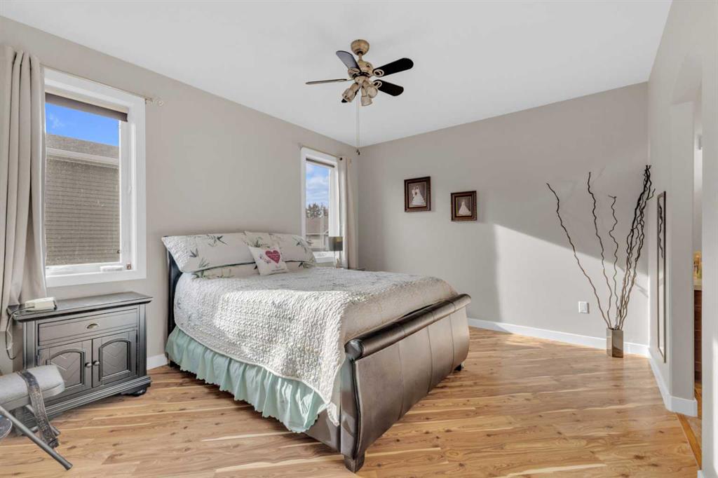Discover this impeccably maintained, move-in-ready bungalow that feels practically brand new—offering 4 generous bedrooms and 3 full baths with undeniable pride of ownership shining through every detail. One of the standout features is the exceptional 20' x 40' detached garage/shop—fully finished with towering 16' walls and a massive 14' overhead door. It's an ideal setup for RV or boat storage, business trailers, extra vehicles, or the ultimate hobbyist's dream workspace. Properties like this—with serious outbuilding potential—are incredibly hard to find in town! Step inside to a bright, welcoming living room bathed in natural light, creating that perfect cozy yet open vibe. Convenience is built in with main-floor laundry, while the kitchen impresses with rich dark cabinetry, handy counter bar seating, and a seamless flow into the dining area—great for casual family meals or hosting friends. Just off the kitchen, a spacious deck awaits your BBQ setup and bistro table, making it easy to soak up those sunny days outdoors. The main level delivers everyday living at its best: a full bath, a cozy secondary bedroom, and a luxurious primary suite featuring a walk-in closet and luxury ensuite. Head downstairs to even more flexible space—a welcoming rec/family room, two large bedrooms, another full bath with a stunning spa-like shower, ample storage, and a practical utility area. Recent updates make this home truly turn-key: new washer & dryer (2024), new stove (2022), fresh shingles and eavestroughs (2022), quick curb appeal landscaping, and smart keypads on all exterior doors for effortless access. With thoughtful upgrades, versatile living areas, prime in-town location, attached garage plus that incredible detached shop, this is the rare opportunity you've been waiting for.