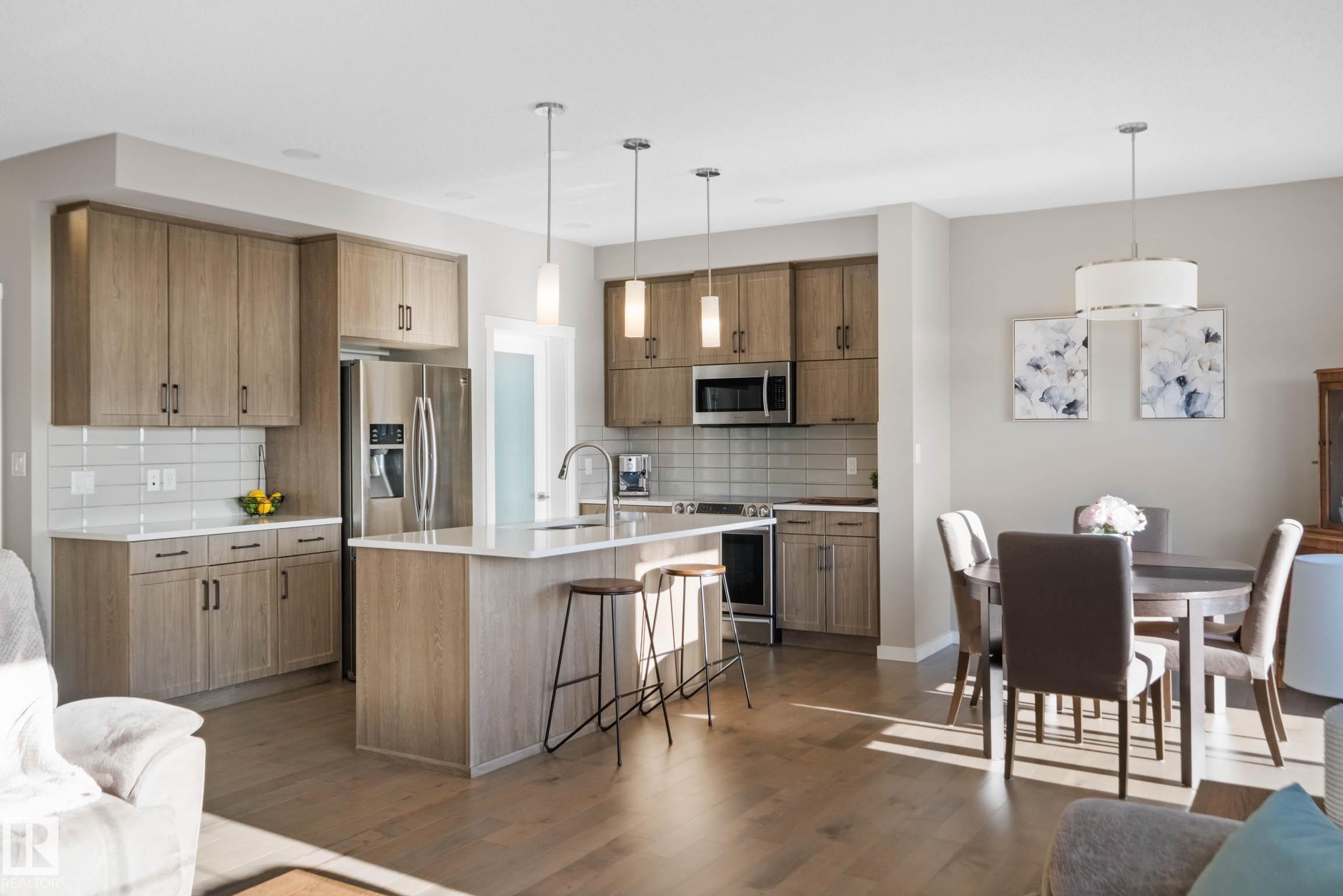 Welcome to this beautiful 2-storey home located in the desirable community of Maple Crest that is perfectly situated on a quiet street and backing onto lush green space. Step inside to an open concept main floor featuring 9-foot ceilings, elegant engineered hardwood floors, and a cozy gas fireplace in the living room—perfect for relaxing or entertaining. The chef-inspired kitchen boasts stainless steel appliances, quartz countertops, rich maple cabinetry, a spacious island with breakfast bar, and a walk-through pantry for added convenience. Upstairs, you’ll find 3 generous bedrooms, including a spacious primary suite complete with a walk-in closet and a 4-piece ensuite. Enjoy the outdoors in your, south-facing pie-shaped backyard. Designed for minimal upkeep, it features a large 26x16 composite deck, synthetic lawn, and elegant stamped concrete—perfect for summer gatherings or quiet evenings. Additional highlights include an oversized 23x24 attached, heated garage, 2 zone heating system and central A/C!