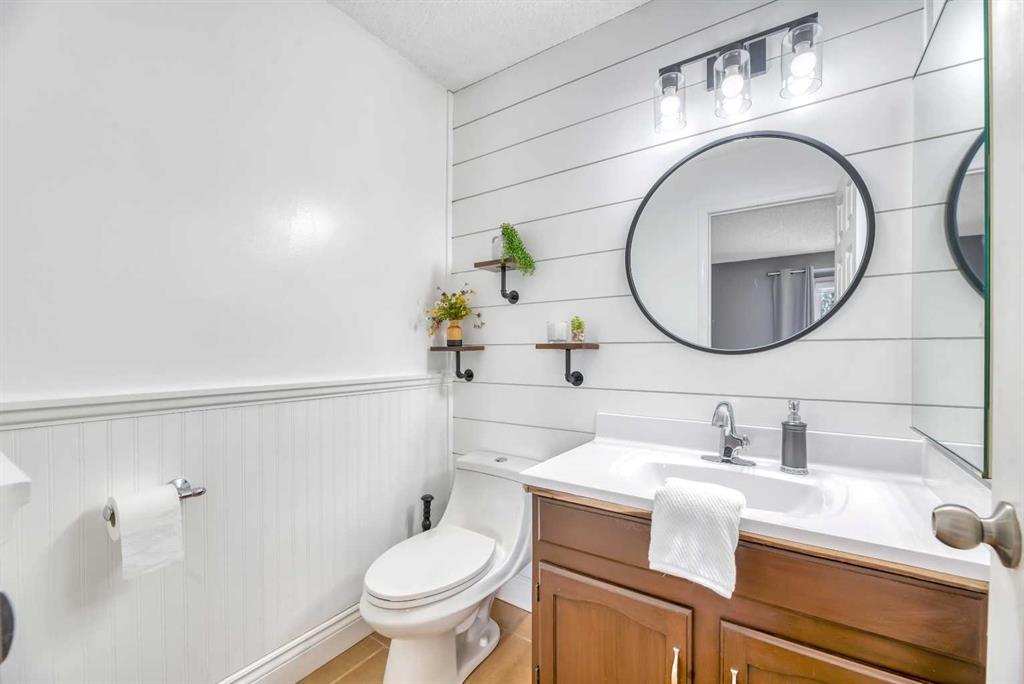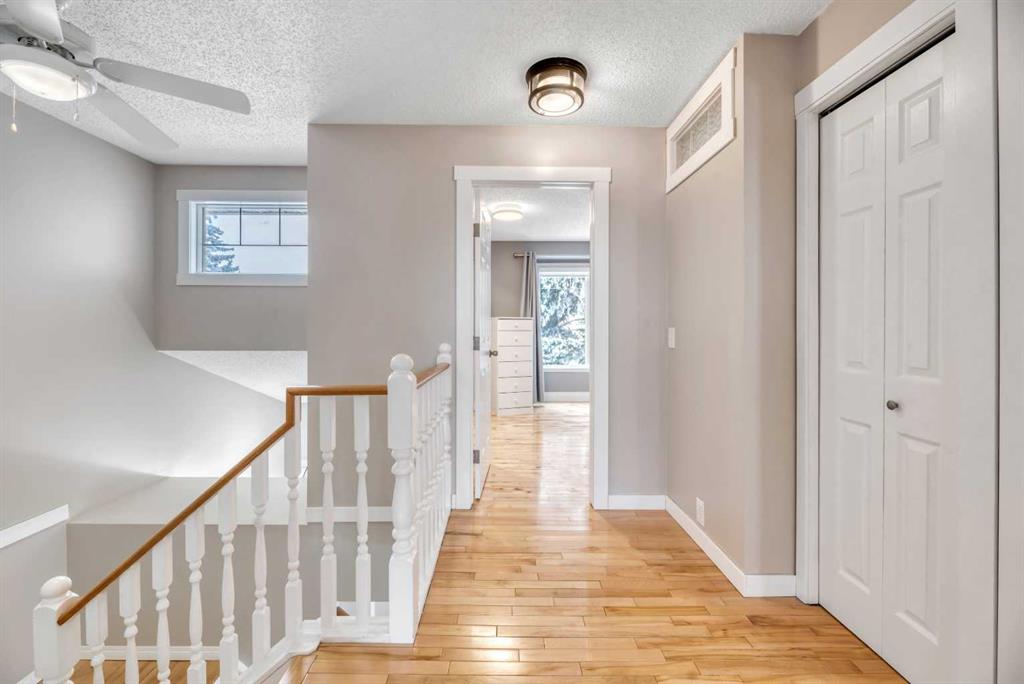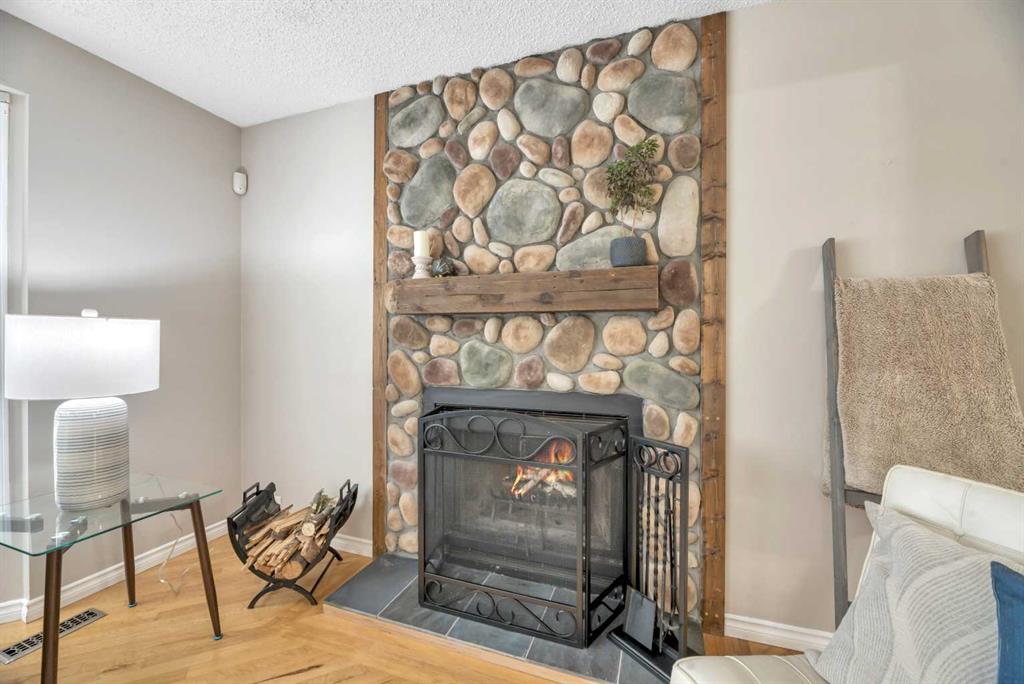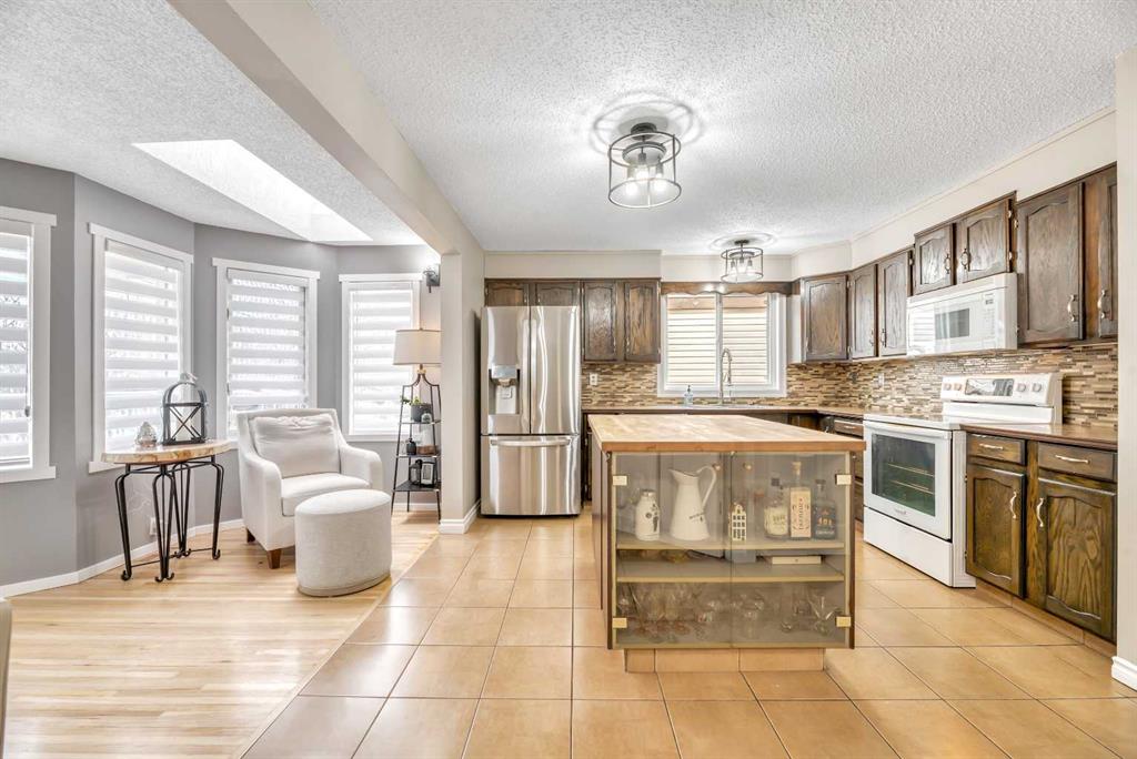 Welcome to this meticulously maintained, move-in ready home tucked away on a quiet cul-de-sac in the desirable community of Scenic Acres. This 3-bedroom, 3.5-bathroom home with a double attached rear-facing heated garage combines thoughtful updates, functional space, and a warm, family-friendly layout. Pride of ownership is evident throughout, with no poly-B plumbing, Lux argon-filled windows, a newer roof, air conditioning, fresh paint, and designer window coverings already in place. The inviting main living area is anchored by a stunning rock-faced wood-burning fireplace, creating a cozy focal point for everyday living. The beautifully updated kitchen features refreshed appliances and flows seamlessly into an additional family room, offering wonderful flexibility for a growing or busy family. Step outside to the south-facing rear deck, complete with a natural gas hookup for the BBQ, where west and south exposures provide mountain views and all-day sun. The lower Rundle stone patio, complete with a new concrete rear walkway, creates the perfect setting to relax and enjoy evenings in the yard. The fully developed lower level adds exceptional value with a media/games/multipurpose room, ideal for entertaining, hobbies, or family movie nights. A new washer and dryer, ample storage, and generous living spaces throughout make this home as practical as it is welcoming. A fantastic opportunity to own a thoughtfully upgraded home in a sought-after cul-de-sac location — offering comfort, functionality, and space for every stage of family life.