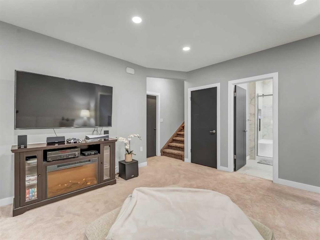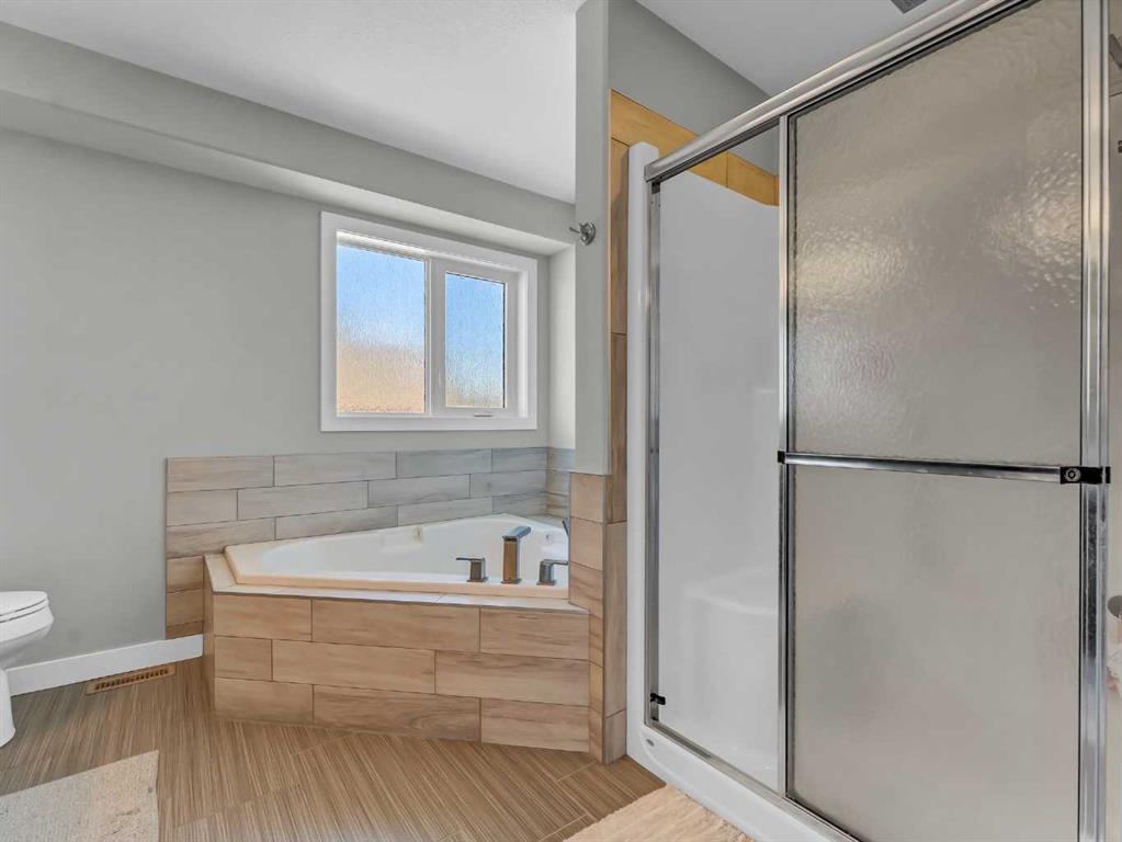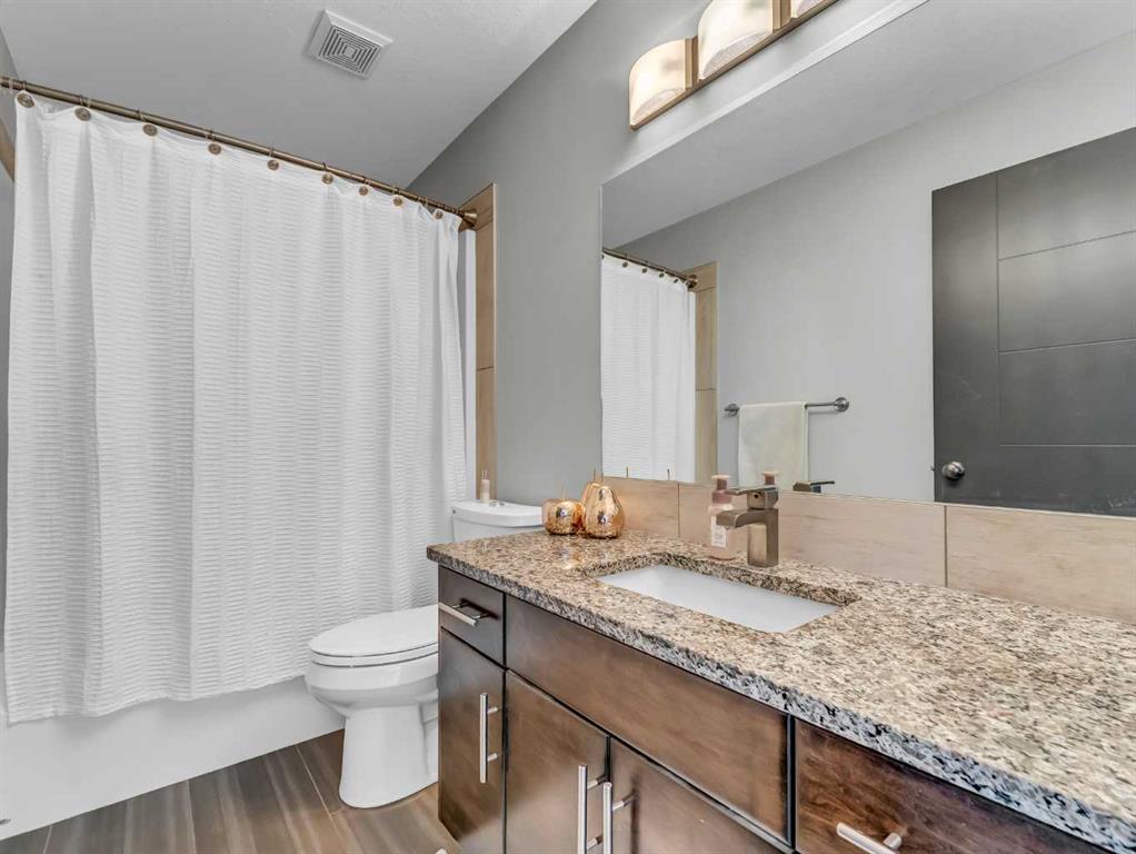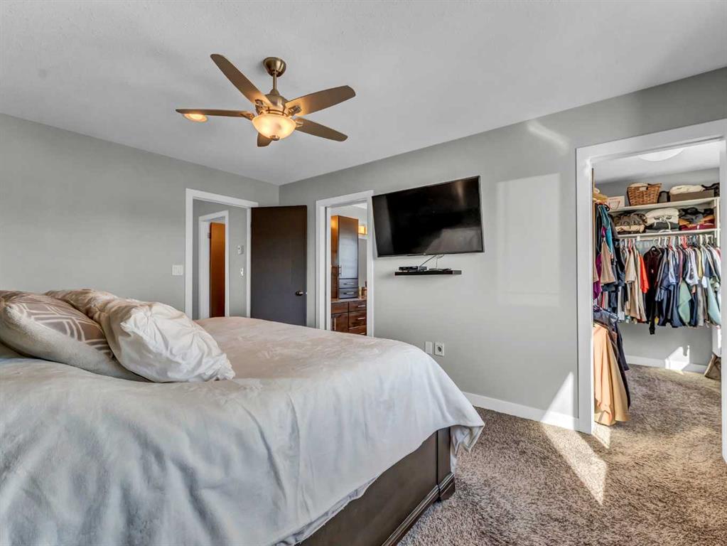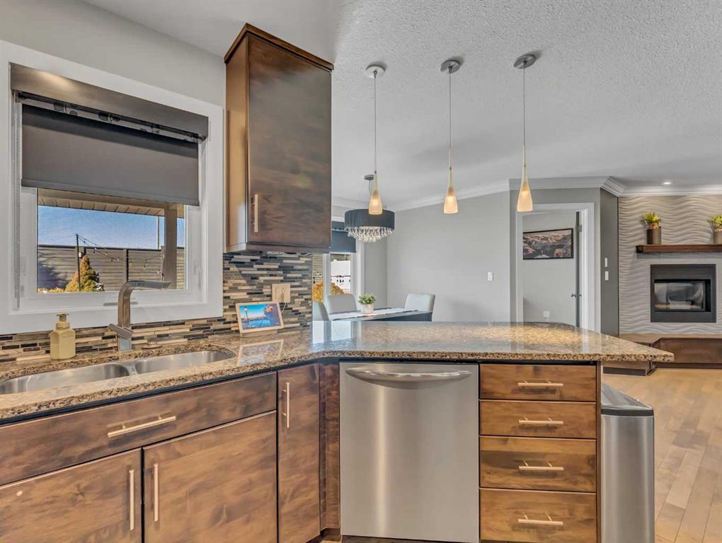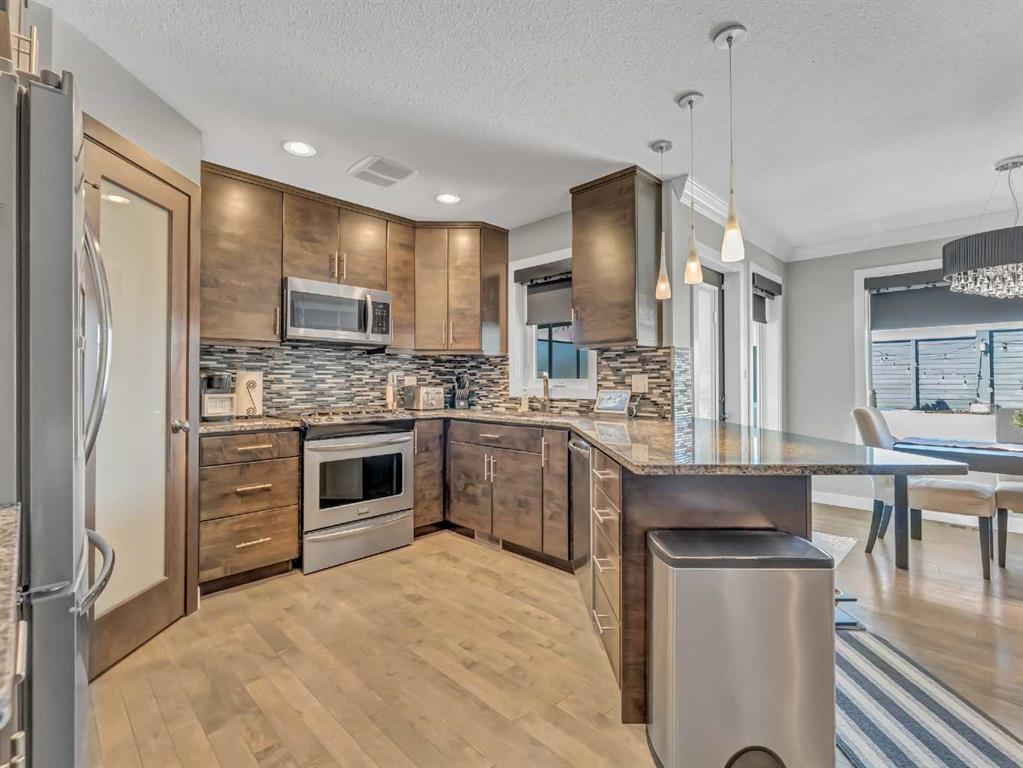 Thoughtful details throughout this home create a warm and inviting atmosphere, starting with the real hardwood flooring that flows seamlessly across the main floor. The entry way is the perfect welcome into the home, its bright and inviting. The open-concept living space is filled with natural light from large windows and includes a conveniently located main floor office—perfect for staying connected with family while working or enjoying views of the lovely backyard. The kitchen showcases custom details, modern yet warm finishes, a peninsula feature with eat up seating, a corner pantry, and stainless steel appliances, making it both stylish and functional . The living room is a cozy focal point with built-in cabinetry and stunning tile work surrounding the gas fireplace. Upstairs you’ll find three well-sized bedrooms and a conveniently located laundry room complete with sink and cabinetry—right where all the laundry happens! The primary bedroom features a walk-in closet with a window and built in features, and a private ensuite with a relaxing soaker tub, double sinks and a walk in shower. The bright and welcoming basement offers a spacious family room, a beautifully done bathroom, and a dedicated gym area. This space could easily be converted into a fourth bedroom if desired. Outside, enjoy the fantastic backyard featuring a good size concrete patio, and a hot tub - perfect for relaxing or entertaining. There is a small BBQ deck off the inside dining space with a gas hook up as well. The yard is fully fenced, there are underground sprinklers front and back with a shed for extra exterior storage. The double attached, heated garage is another great feature of this property, and the concrete front drive partners well to allow for ample parking. This home is centrally located with two great playgrounds within close walking distance, and large greenspaces and schools, and other desirable amenities just a stones throw away.