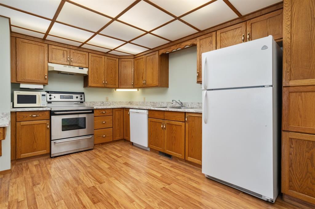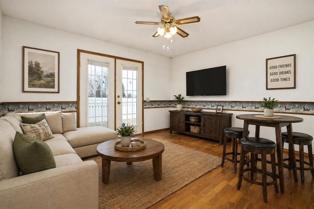Welcome home to the quiet, highly sought-after cul-de-sac of Liberty Village, a wonderful community known for its peaceful atmosphere and friendly neighbours. Perfectly suited for retirement living, you’ll love being just steps from walking trails through a scenic wooded valley, as well as close to recreation facilities, community gardens! This bright and inviting zero step end-unit home offers an abundance of natural light, with large windows that fill the space from front to back. Featuring 3 bedrooms and a partially finished basement, there is room to relax, entertain, and host guests with ease. The main floor showcases a spacious kitchen with oak cabinetry, two comfortable living areas including a bright front living, dining room and a back bonus room off the deck with a wet bar for all your entertaining needs! The main level includes a spacious primary bedroom with generous closet space, along with two bathrooms and a functional laundry area. Thoughtfully designed for accessibility, the home includes a ramp, raised toilet, and grab bars in the shower, making it a practical and comfortable option. Downstairs, you’ll find two additional bedrooms, a 3-piece bathroom, and plenty of storage space. Step outside to enjoy the pie-shaped lot, offering extra yard space and a large deck perfect for quiet evenings or family gatherings. The backyard also includes three storage sheds and a low-maintenance vinyl back fence. Additional features include a single attached garage with direct entry into the home, plus convenient side door access. Set in a prime location with incredible neighbours, this is the kind of community where you’re warmly welcomed from day one and quickly feel right at home.