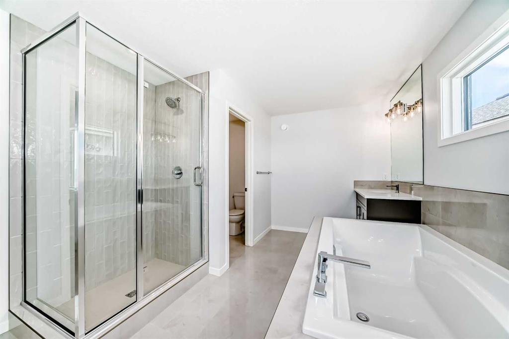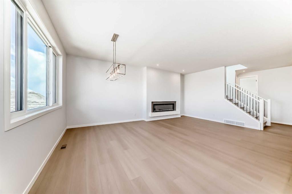 Walk out and back on the pond side green space, on a conventional lot, and brand new, welcome to this 2472 sqft single family home in popular Livingston. It features main floor bedroom/office with full bath ensuite, LVP flooring throughout the main floor, 9 feet ceiling on the main floor and basement, 8 feet height doors on the main floor, upgraded cabinets with 2 tone colors, quartz counter tops in the kitchen and bathrooms, knock down ceiling, wrought iron spindles on the stairs, and large deck. Upper floor has 3 bedrooms all with walk in closet, large master bedroom with beautiful view, large ensuite with double vanity sinks, large soaker tub, and separated tiled shower, and large walk-in closet, large bonus room with window, and spacious laundry room. Main floor has large living room, large electrical fireplace, huge kitchen with upgraded stainless-steel appliances and a chimney hood fan, built in microwave, sliding door to large deck, and upgraded lighting package. Walk out basement with lots windows rough-ins for future hood fan, bathroom, and washer/dryer. It closes to green space, ponds, future school, and easy access to major roads. ** 396 Herron Landing NE **
