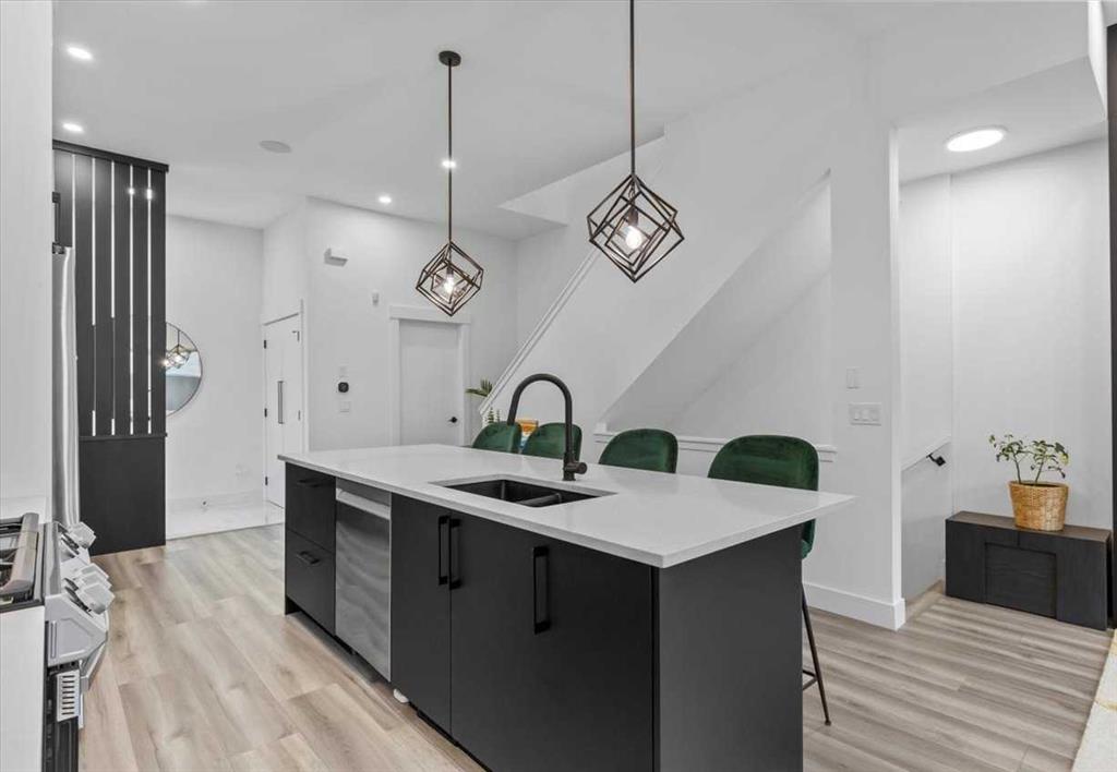 Welcome to this Immaculate and thoughtfully designed town home in the heart of Marda Loop, over 1,700 sq ft of living space, just minutes away from downtown. Features superior party wall system between units. Main floor showcases 11 ft ceiling, open concept layout, vinyl plank flooring, designer built entry unit. The living room is spacious featuring a wall unit, sleek tile, and a Bluetooth enabled electric fireplace. The kitchen is equally impressive, boasting a large island with quartz counter top, ideal for entertaining, ample soft- close cabinetry, stainless steel appliances. The large south facing sliding door brings in rays of sunshine and light through out the day, tastefully covered with Hunter Douglas honeycomb shades and floor to ceiling blackout drapes for privacy professionally installed by Normandeau, overlookimg a fenced, cozy yard leading to a single detached garage.This floor is completed by a spacious guest half bath. Upstairs, the primary bedroom is a true retreat, with vaulted ceilings, double door his and hers closets, large windows with professionally installed electric blackout honeycomb shades. The barn door leads into a spa-like en-suite with heated flooring, double sink vanity, quartz counters, skylight, oversized tiled shower and dual shower heads. The second large bedroom also has it's own en-suite and skylight, plus manual honeycomb shades. The fully finished basement boasts a bright family/ flex room. A third spacious bedroom with a walk-in closet and a full bath. THIS HOME COMES WITH COUNTLESS UPGRADES- A/C, high efficiency furnace, humidifier, thankless hot water on demand, radon extraction sump pump, built-in speaker system, light dimmers in master bedroom, smart thermostat (ecobee), bathroom fan timers, kitchen and master bedroom lights can be manged through smartphone. This exceptional home offers the best of urban living in an ideal location. This is the one you have been waiting for. Book a showing today.