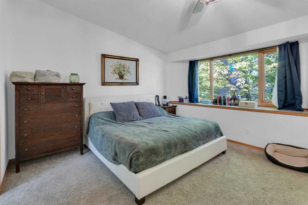 Welcome to this 3 bedroom and 2.5 bath END UNIT bungalow style VILLA with double attached garage located in the desirable Christie Gardens complex! With a total of over 2600 ft2 of living space, this property offers a private and quiet location at the end of the cul de sac with mature trees surrounding it. Open main floor plan with vaulted ceilings and large centre skylight floods the living area with natural light! Main floor has 2 bedrooms plus an office/den with built in desk and shelves. Spacious primary bedroom features a 5 piece ensuite bath with air jetted tub and separate shower, plus large closet. Main floor also features a second bedroom. Spacious white kitchen with breakfast nook opens onto sunny, SW exposed back deck surrounded by trees for privacy. Fully developed basement includes large rec room with built in shelving, 3rd bedroom (note: window is not egress size), full bath, laundry and plenty of storage. One of the storage rooms could be used as a wine cellar with built in sink and shelves, plus a cold room attached. Great location within walking distance of the Sirocco LRT station, West Market Square, Sunterra Market, and featuring many walking/biking trails just minutes away. Great access to schools, shopping, downtown and west to Kananaskis, Banff and the Rocky mountains. This home offers an easy "lock and leave" lifestyle at an unbeatable value!