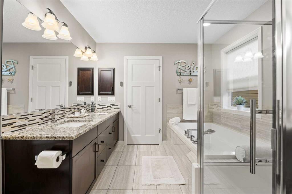 Welcome to this GORGEOUS family home in the heart of Chaparral Valley! Sunny, bright, and beautifully maintained, this Jayman-built executive home offers one of the best layouts you’ll find — designed for comfort, function, and family living! Step inside and you’ll immediately notice the abundance of natural light, soaring 9’ ceilings, and gleaming HARDWOOD floors that flow throughout the main level. The OPEN CONCEPT design creates the perfect setting for entertaining or relaxing with family. The spacious living room centers around a cozy gas fireplace, while the chef-inspired kitchen impresses with stainless steel appliances, GAS cooktop, rich cabinetry, GRANITE countertops, a walk-in pantry, and a massive center island — ideal for gatherings and casual dining! The bright breakfast nook is surrounded by large windows and opens to your back deck overlooking the spacious WEST-facing yard with open views and back alley access — a rare find and perfect for summer BBQs or playtime with the kids! Upstairs, the thoughtful layout truly shines! A large bonus room sits perfectly in the middle, separating the primary suite from the two additional bedrooms — giving everyone their own space and privacy. You’ll also find a convenient homework desk area (perfect for kids or a small office) and upstairs laundry for everyday ease. The primary bedroom is a true retreat with a walk-in closet and a luxurious 5 piece ENSUITE featuring a dual Granite vanity, jetted soaker tub and walk-in shower. The professionally developed lower level offers even more space with a large family room featuring a second cozy fireplace, a wet bar, games area, 4th bedroom, and a full bathroom — the perfect setup for guests or movie nights! BRAND NEW paint throughout the upper levels, this home is MOVE-IN-READY and located on a QUIET crescent, just minutes from Blue Devil Golf Course, Fish Creek Park, walking trails, schools, and all the amenities you could ask for! This home truly has it all — an incredible layout, stylish updates, and a location that offers the best of family living in Chaparral Valley!
