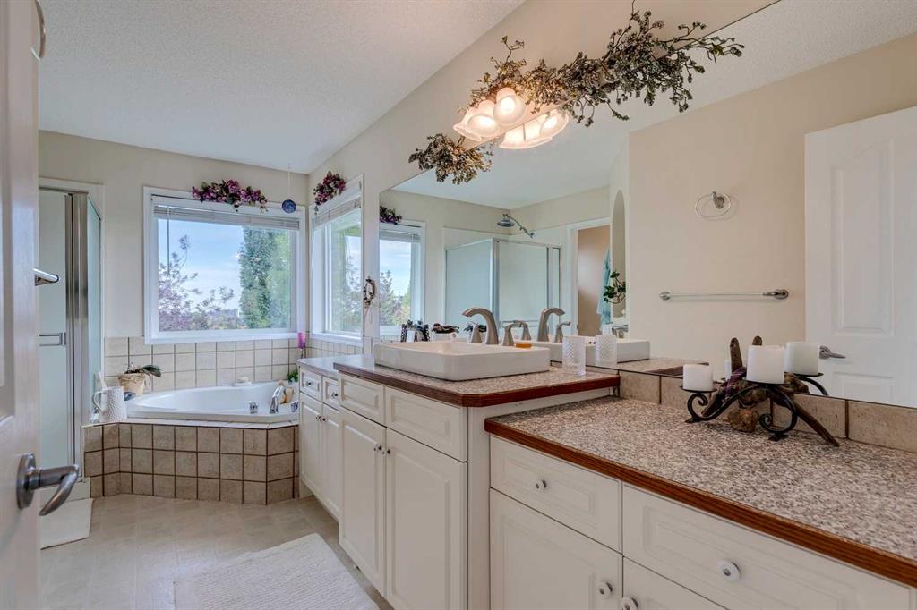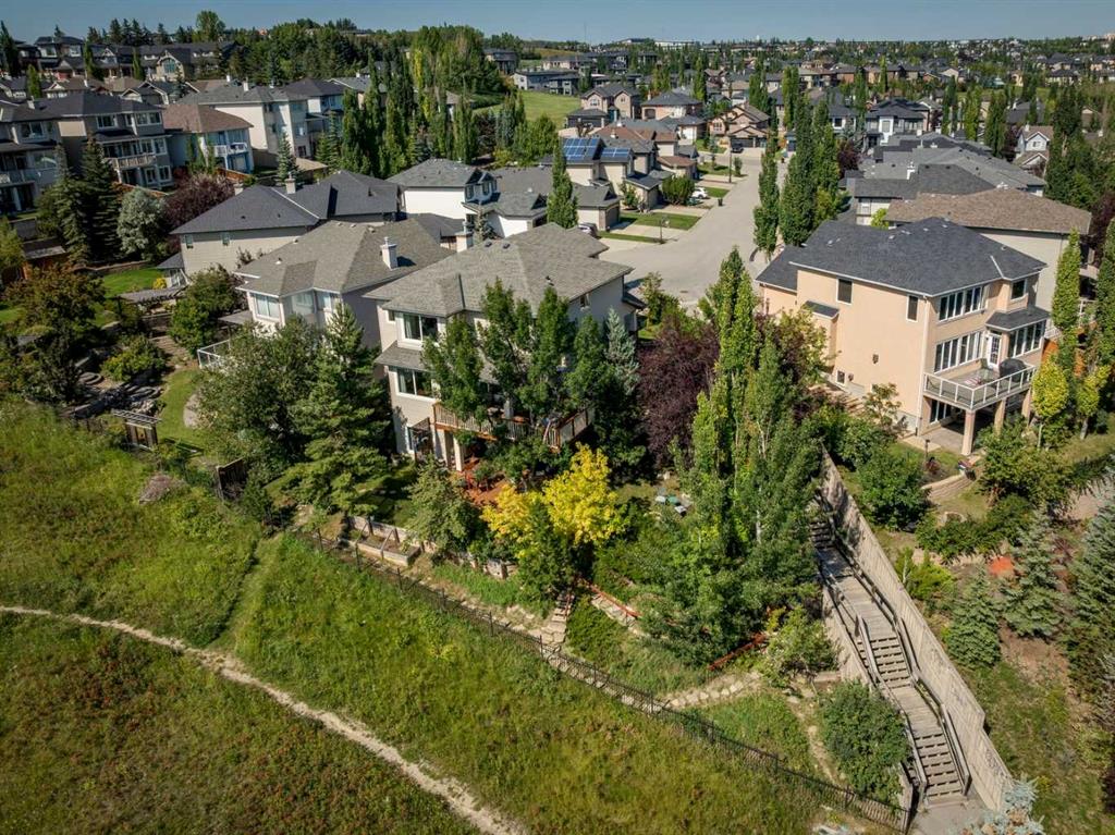 One owner, custom built Jayman home on a one-of-a-kind, park-like, overlooking the nature reserve. Views from east to west with a quiet cul-de-sac location at the front and your own private oasis at the back. This stunning walk-out two storey home has a total of 3,800 sqft of living space with a total of 6 bedrooms making it a great family home. From the moment you step into the home, you’ll see why this property is so special! The full-size south exposure windows in the living room and across the back of the home bring in an abundance of natural light and amazing views. The living room is highlighted with a gas fireplace, surrounded by tile, topped with a wood mantle. Spacious kitchen with a large center island, 3-stool raised breakfast bar, plus a full-size eating nook which is surrounded by views out of all 3 windows and sliding doors to the deck (stairway leading down to the yard). The deck was extended to incorporate your own private outdoor dining space amongst the mature trees. Enjoy a sunrise coffee, afternoon happy hour or sunset dinner! A unique feature is the "reverse" stairway (finished in hardwood) opening directly into the kitchen and leading up to the 2nd floor – the first thing you’ll see every morning is the spectacular view. The main floor, with custom hardwood flooring throughout, also features the formal dining room, office/den, mudroom/laundry which has direct access from the oversized double garage. The upper level floor plan is so well laid out with a huge bonus room for the kids at the front, 3 spacious bedrooms in the middle, 4 piece bathroom, and a wonderful primary suite and retreat with views that will never get old. Spa-style ensuite with corner soaker tub and separate shower. The lower walk-out level is fully developed with 2 bedrooms (egress windows), 4 piece bathroom, storage and rec room with access outside to a covered deck. The beautiful fully fenced lot has many mature trees, shrubs, perennials, wood retaining wall, firepit and terraced landscaping. Open the gate and have direct access to the pathways in the park - great for people and dog walking too. Excellent location, just minutes to downtown, West Hills Rec Centre, shopping, Costco restaurants or head west to the mountains on Stoney Trail. Original owners have loved their home and now you can as well. Truly an investment in both lifestyle and real estate!