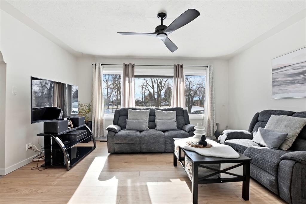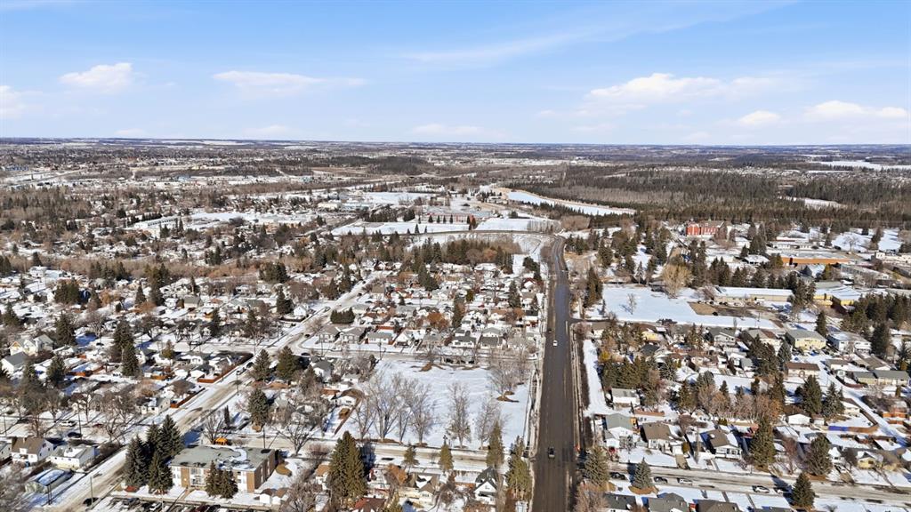 Welcome to this charming and thoughtfully updated bungalow situated on a double lot across from green space and a playground, and close to schools including Lindsay Thurber. From the moment you step inside, you’ll appreciate the blend of original character and modern finishes that create a warm and functional living space. The south-facing living room is filled with natural light and offers peaceful views of the park across the street. It flows seamlessly into the refreshed kitchen, featuring new countertops, freshly painted cabinetry, updated flooring (2026), and a gas stove (2019). A spacious dining area and large pantry add everyday practicality. The main floor offers two bedrooms, including a comfortable primary bedroom, along with a beautifully renovated 4-piece bathroom. Recent interior improvements include fresh paint throughout, updated flooring (2026), all new windows (2023) including the basement, and a new front door. Mechanical updates include a furnace (2012), hot water tank (2015), shingles (2015), and eavestroughs (2025), along with updated plumbing and electrical. The fully developed basement adds excellent flexibility with one additional bedroom, a very spacious 4-piece bathroom, updated flooring, and two additional rooms ideal for a studio, gym, office, or hobby space. A laundry closet and cold room provide additional functionality. Outside, the fully fenced yard features garden boxes and cedar trees, offering plenty of space to relax and enjoy. The oversized double garage provides ample room for vehicles, storage, or workshop space, and there is additional RV/trailer parking beside the garage. A well-cared-for home offering three bedrooms plus two additional flexible rooms, extensive storage, and numerous updates — all in a desirable, family-friendly location.