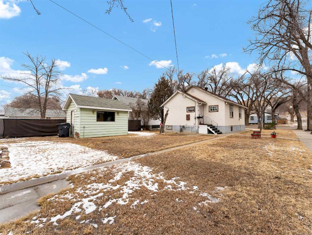 Handyman’s Special on a Large Double Corner Lot! Looking for a project with great potential? This handyman’s special sits on a large double-corner lot, offering plenty of space and potential for future improvements, redevelopment, or expansion. The property also features a detached single garage along with a unique bunker-style shed, providing additional storage or potential workshop space. Inside, the home welcomes you with a bright enclosed front porch, ideal for a mudroom or entry space. The main floor features a spacious living room, a large kitchen with dining space, two bedrooms, and a full bathroom. The basement currently houses a large open area, the laundry area, a bedroom, and offers additional space that could be developed to suit your needs. Some important updates include new shingles in 2019 and a hot water tank replaced in 2015. With its generous lot size, corner location, and excellent potential, this property presents a great opportunity for handymen, investors, or buyers looking to build sweat equity. Bring your ideas and make this property your own!