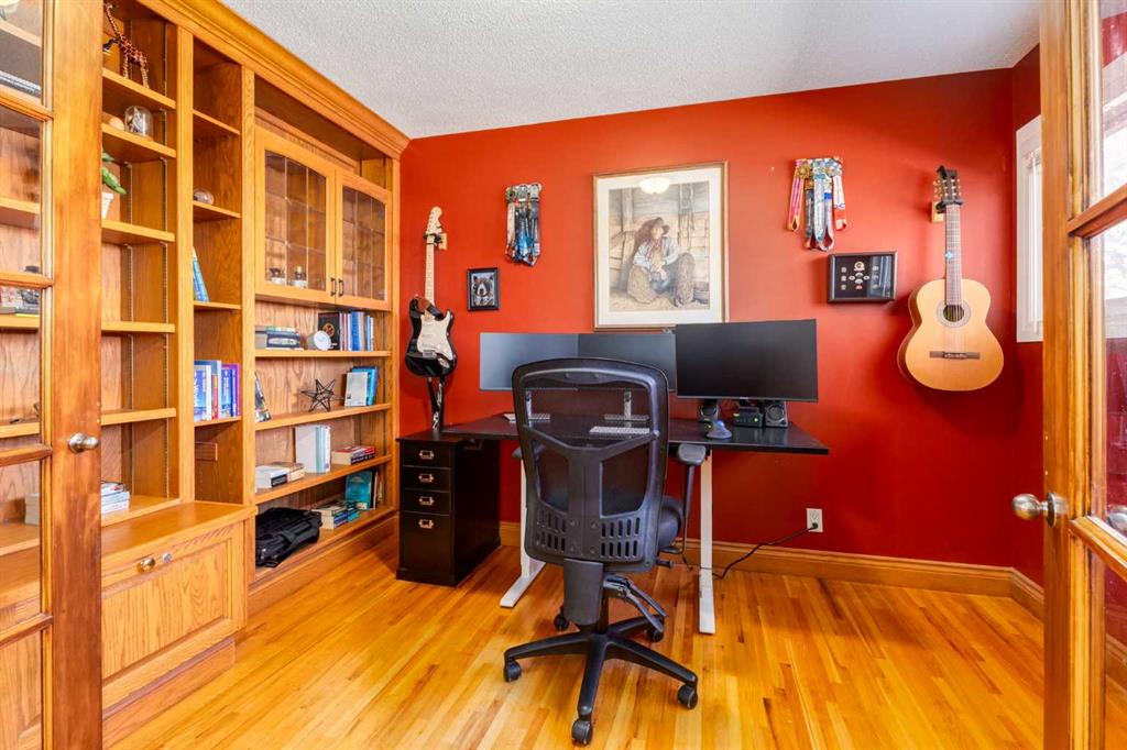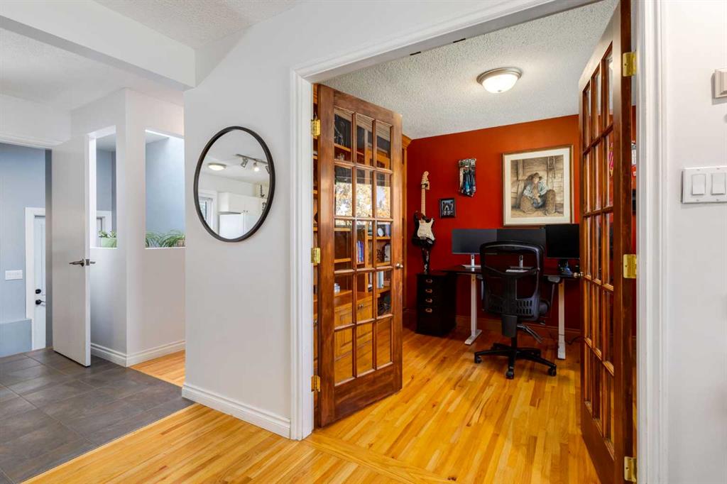 Ideally situated in the quiet, inner-city community of Glendale, this well cared for gem showcases 5 bedrooms, 2 bathrooms, countless upgrades, a single garage, large backyard with mature trees, and a phenomenal location across from a school, steps from the community centre, parks, greenspaces, tobogganing, and outdoor hockey rink. This RC-G zoned, 50x100' lot features a home with charming curb appeal, a large font yard and matures trees and front planters. As you enter this beautiful home, you are greeted by gorgeous solid oak, site finished hardwood flooring and an open concept layout including a spacious kitchen, bright living room, and a dining room with windows overlooking the beautiful and spacious south backyard. The kitchen boasts a center island with bar seating, tons of counter space, and white solid wood shaker style cabinets with ample storage. The adjacent living room is flooded in natural light through floor to ceiling bay windows and boasts an elegant gas fireplace with marble style surround and a classic white mantle - perfect for cozying up to watch the snow fall outside and to gather around for holidays. Enjoy coffee at your dining room table while watching your kids or pets play in the spacious south-facing backyard. Through double French doors you’ll find the main floor office with beautiful built-in bookcases and shelving, making it the perfect work from home space, or a third bedroom on the main level. The main floor is completed by a full 4-piece bathroom with recent updates. This home boasts a separate back entryway providing access to the lower, giving it the potential to add a legal suite in the future. The lower-level features brand new carpeting, two spacious bedrooms, one with a giant walk-in closet, a large media space, room to play, a large storage area, laundry machines, and a fully renovated 3-piece bathroom with new tile, vanity, and a spacious stand-up shower. Park in the single detached garage and enjoy the summertime in the sprawling south facing backyard with room to play. Other upgrades include central A/C (2021), triple pane windows upstairs (2017), an irrigation system (front and back), a new hot water tank (2024), new sump pump (2025), furnace (2014). Enjoy unobstructed views no neighbors out your windows and the school playground in the distance from your living room windows. This superb location is one block from the Glendale community center which features picturesque scenes, an outdoor rink, tennis courts, a playground, and flows into Turtle Hill Park, which is perfect for enjoying an evening walk in nature. This home is also a quick walk to multiple schooling options including Spanish bilingual, French Immersion, Montessori, Catholic, and public schools, and is a short commute downtown. This wonderful home is extensively upgraded, provides a peaceful inner-city lifestyle in a lower density family friendly community, and affords a great commute to amenities and downtown.