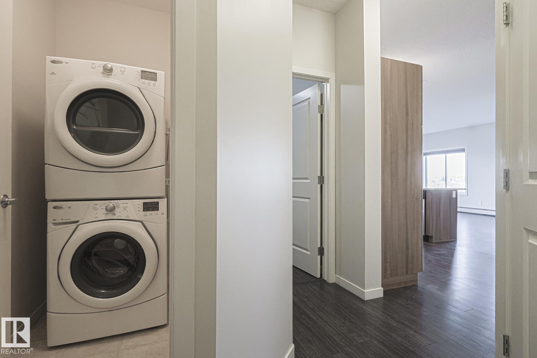 This gorgeous TOP FLOOR CORNER UNIT is located in the desired community of RUTHERFORD. This unit comes with an OPEN-CONCEPT layout featuring FRESH PAINT, plenty of NATURAL LIGHT and laminate flooring throughout. There is a spacious living room with an adjacent dining area. The gourmet style kitchen comes with modern cabinetry, all your essential STAINLESS-STEAL APPLIANCES, GRANITE countertops and a large BREAKFAST ISLAND. The master bedroom comes with an ENSUITE bathroom and a spacious WALK-IN COSET. There is another bedroom and bathroom on the opposite side of the condo. Enjoy the luxury of a DEN for working from home and IN SUITE LAUNDRY. The spacious BALCONY is to die for your summer enjoyment. This unit comes with a TITLED underground parking stall with an assigned STORAGE CAGE. The building is close to all your amenities including parks, schools, shopping, restaurants and major roadways like Ellerslie and Calgary Trail.