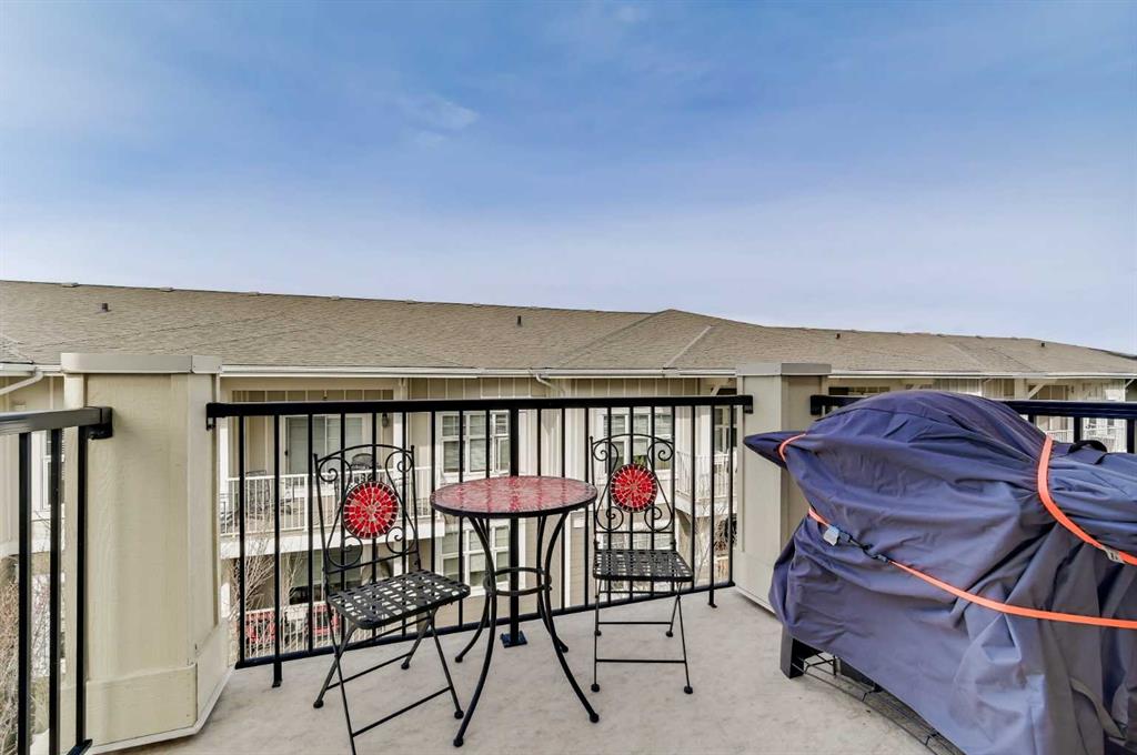Don't miss this beautifully upgraded, top-floor condo in Mahogany! This 2-bed, 2-bath unit features a modern, airy design with high ceilings and wide-plank laminate flooring throughout. The open-concept kitchen is a showstopper, with a massive island and quartz countertops, perfect for entertaining. The primary suite is a private retreat with a walk-in closet and a stylish ensuite. A second bedroom, another full bath, and in-suite laundry provide everything you need. You'll love the peaceful balcony with its gas hookup and the convenience of a titled underground parking stall and storage locker. The location is unbeatable: walk to Westman Village for dining and shopping, and enjoy year-round fun on the 63-acre Mahogany Lake. Easy access to Stoney and Deerfoot Trails makes commuting a breeze. This one has it all!