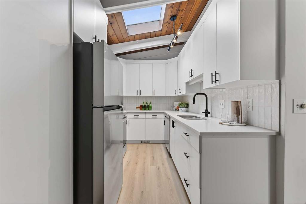 3 BEDS | 2 FULL BATHS | TOTAL 1,878 SQFT | 4-LEVEL SPLIT | VARSITY | RENOVATED | FENCED PRIVATE PATIO | QUIETLY FACING GREENSPACE | EXPOSED BEAMS | WOOD BURNING FIREPLACE | LARGE SOUTH FACING WINDOWS | QUICK POSSESSION AVAILABLE | POTENTIAL TO ADD BED AND BATH | PRIMARY BEDROOM RETREAT ON SEPARATE LEVEL This is not your typical cookie-cutter townhouse. Welcome to one of the most unique townhomes in Varsity, offering 1,878 sqft of total space across a standout 4-level split with character you simply don’t find anymore. Think exposed beams, skylights, a cozy wood-burning fireplace, and a layout that actually feels like a home, not a box. The main level is bright and inviting with large south-facing windows, an updated kitchen, and open dining and living space perfect for everyday living or entertaining. Two more bedrooms upstairs, while the entire third level is a private primary retreat with a renovated full bathroom, your own escape at the end of the day. Use the unfinished basement as extra storage or develop with plenty of space to add another full bed and bathroom. Step outside to your large, fully fenced private patio (new fence 2025) backing directly onto greenspace, ideal for summer nights, pets, and letting the kids roam. Located in the highly sought-after Oxford Mews, a pet-friendly complex with lush landscaping, fire pit, community gardens, and walking paths, this is a true hidden gem. Unbeatable Varsity location, minutes to Market Mall, University of Calgary, Children’s Hospital, LRT, Bow River pathways, top schools, and quick access to Crowchild Trail. Homes like this rarely come up. Don’t miss it.