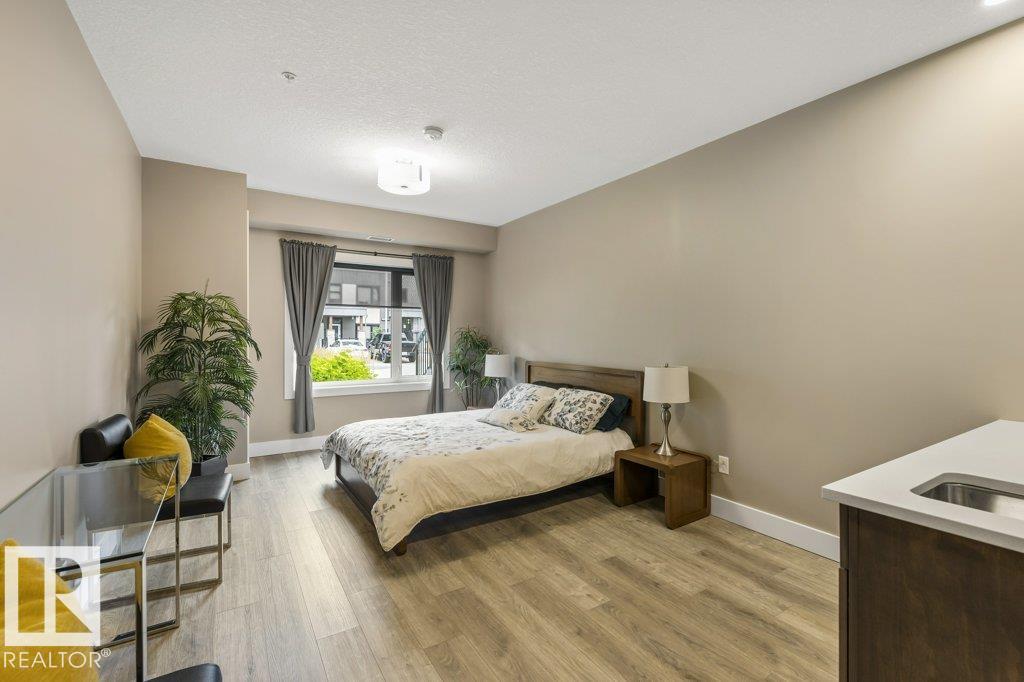 STUNNING is the only way to describe this absolutely immaculate WEST FACING TOP FLOOR unit. Offering TWO BEDROOMS and TWO BATHROOMS with over 1100 sqft of luxurious living. Bright and open, the kitchen features full height kitchen cabinets, QUARTZ countertops, a large ISLAND, and a wall pantry. Just off the kitchen is a large dining space with extra cabinets and shelving. The living room has stunning views over greenspace/lake. The primary bedroom can easily accommodate a king suite and features a walk through closet with custom built-ins, and 4pce bathroom with DOUBLE SINKS. The second bedroom also has it's own walk in closet with additional shelving- perfect for extra storage. There is a spacious in suite LAUNDRY ROOM, POWERED BLINDS, CENTRAL AIR CONDITIONING, BBQ GAS HOOK UP and TWO UNDERGROUND PARKING STALLS, one stall with a storage cage. Very well run building situated close to all amenities.