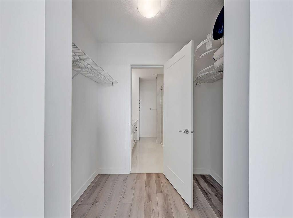 Welcome to Auburn Rise! Here’s your rare opportunity to own THE BEST UNIT in the building in one of Calgary’s few LAKE communities; A TOP FLOOR, CORNER UNIT featuring TWO BEDROOMS, TWO FULL BATHROOMS, AIR-CONDITIONING and underground parking for TWO VEHICLES! This beautiful building is part of a well-managed complex offering modern style and contemporary finishes that rival most condos in the City, and built only 4 years ago. Step into Unit 406 and you’re welcomed with tall 9-foot ceilings and wide-plank LVP flooring that flows throughout, leading to large windows that completely fill the open-concept living space with BRIGHT natural light. With classic shaker style cabinets in crisp white, and a huge 6-person island with double-waterfall quartz counters and undermount composite sink, the kitchen is a host’s dream come true for guests and family gatherings alike. A suite of quality stainless appliances include a built-in stove and microwave oven, along with a glass countertop range promising quick and easy cleaning once the cooking is done. Step outside and you’ll find a gracious patio, extending nearly 20 FEET along the front of the unit, giving incredible PANORAMIC VIEWS clear to the skyscrapers of the downtown core, and even to the mountaintops to the West, where you’ll get to watch Calgary’s famous SUNSETS! The master bedroom is found tucked away around the kitchen, with an east window offering bright and sunny mornings (and cool evenings), then leading to a walk-through closet which gives way to a private 4-pc ensuite bathroom with dual-sink vanity. The second bedroom also benefits from this east exposure but also offers private access to the shared 4-pc bathroom thanks to a convenient pocket door, meaning guests don’t need to leave the bedroom for access. With so many condos, parking is always an issue, but this unit comes included with an extra large TITLED underground parking stall, allowing for TWO VEHICLES to be parked in tandem. If you need more storage, a storage space is also assigned to the unit and located only steps away from the parking stall, the perfect place to store seasonal items or sports equipment. Finally, location, location, location! Imagine NEVER having to drive to the grocery store again! With Co-op located ACROSS THE STREET, as well other shops, TIM HORTONS, and even the local community pub/restaurant, home can finally be a place where you park your car and take a walk instead. Don’t forget you’ll also get LAKE ACCESS where you can swim and soak up the rays on the beach just down the street from your home!