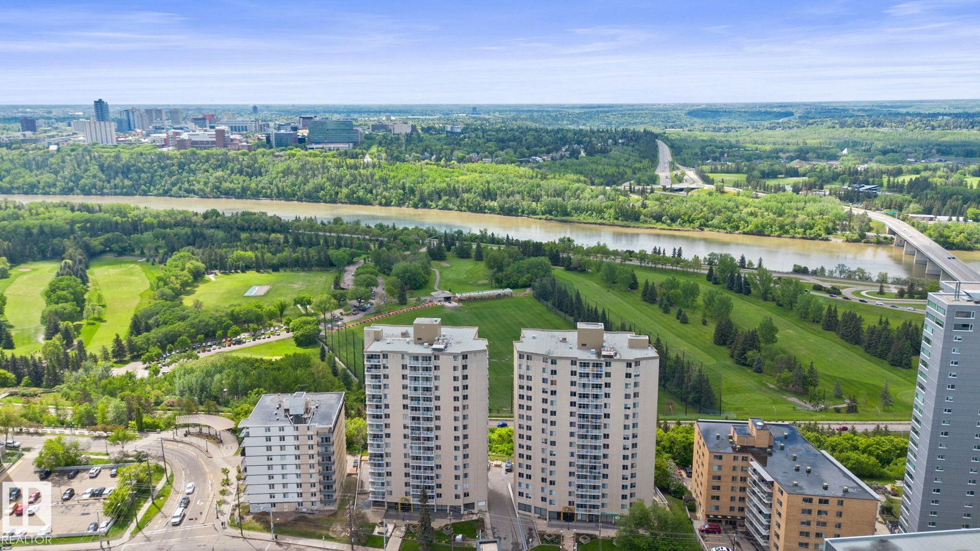 Enjoy breathtaking unobstructed panoramic views of the River Valley from this beautifully renovated 2 bedroom, 2 bathroom condo offering over 1,150SqFt of bright, comfortable living space. Recent updates include newer paint, flooring & appliances creating a stylish yet low-maintenance home. The bright & spacious living room flows into a formal dining area—perfect for relaxing or entertaining. Located steps from restaurants, shopping, parks, downtown & the vibrant 124 Street district, with convenient access to public transit & both the U of A and Grant Macewan campuses, this home offers exceptional walkability & convenience. As an added bonus, you will enjoy 2 titled underground parking stalls with storage! Additional highlights include excellent building amenities with a fully equipped fitness centre & sauna, library, social room, ample visitor parking & condo fees that include all utilities—making this a comfortable & worry-free lifestyle for students, professionals or downsizers alike!