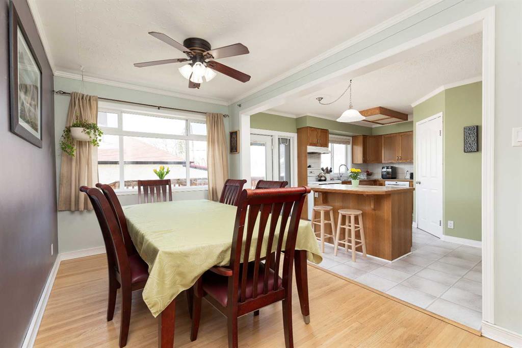 What a great opportunity to own this 5 bedroom, 2 bathroom bungalow within walking distance to two schools & Westminster pool! Situated on a large corner lot, this property features hardwood flooring, an electric fireplace in the living room, a spacious dining nook and kitchen with pantry & Island. There are two large bedrooms on the main floor along with a four piece bath and a whole home cooling fan. There is a separate side entrance and a basement SUMMER KITCHEN! This one could easily be suited with its common laundry area and additional washer hookups in the summer kitchen. The basement has a large family room and three more spacious bedrooms including the current primary bedroom with 3-piece ensuite. Updates over the years include windows, doors, and the vinyl siding. The shingles were re-done in 2010 and half were replaced again in 2021. An extra large (24 x 14) single attached garage, some new fencing along with some brick fencing and RV parking help complete this package! Do not miss out on this one!