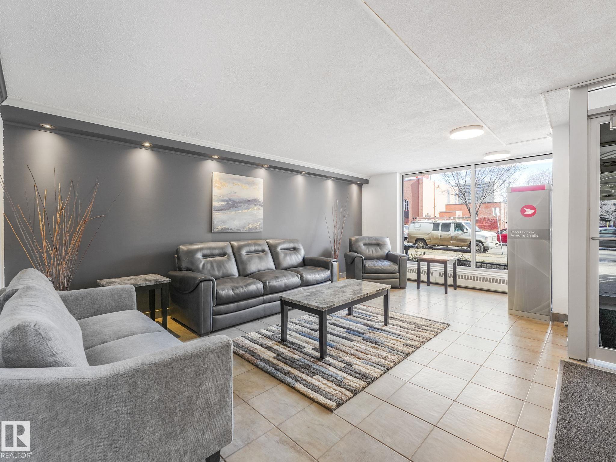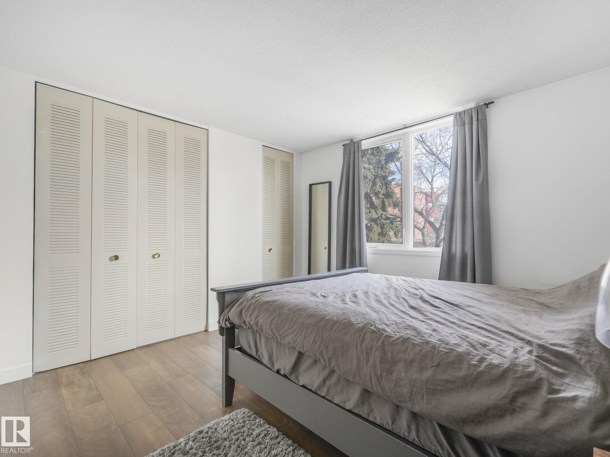 Tucked away in one of downtown’s most sought-after areas is this one bedroom 4th floor gem in Crestview Towers. HEAT, WATER and ELECTRICITY ARE INCLUDED in your condo fees and the building has new elevators! Ideal location by the river valley and ONE BLOCK TO THE LRT for easy to access Grant Mac/U of A. As you step inside, you'll notice the LUXURY VINYL PLANK FLOORING. The kitchen flows into the dining area, offering ample space for your dining set or the option to create a cozy office nook. The bright, spacious living room opens to the balcony, perfect for BBQs or unwinding on warm summer days. The bedroom has plenty of space and 2 CLOSETS! The updated full bathroom includes a modern tub, toilet, and surround. Craving a change of scenery? Go upstairs and enjoy the SUNROOM AND ROOFTOP PATIO WITH INCREDIBLE VIEWS of the river valley & golf course. No need to worry about snow – your vehicle will have PARKADE parking. Need extra space? The building has affordable STORAGE units+bike storage for rent.