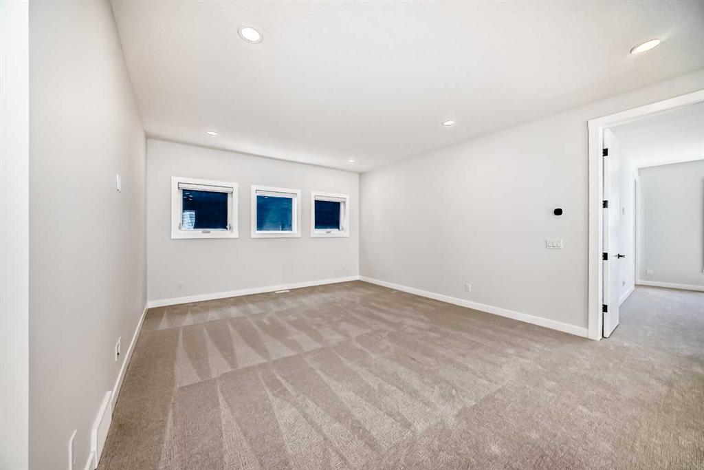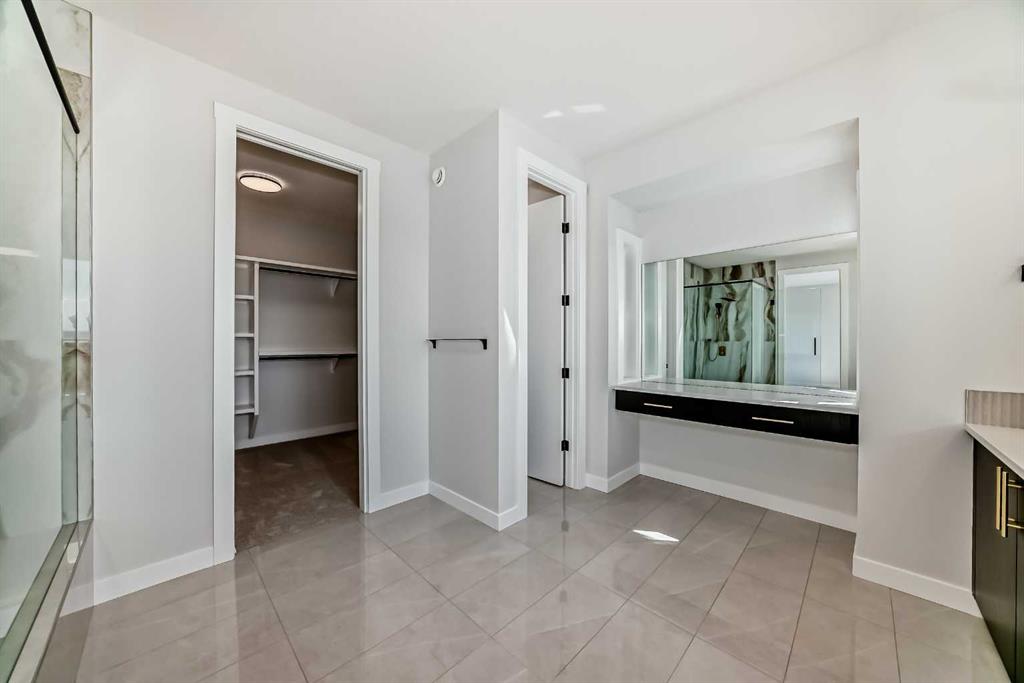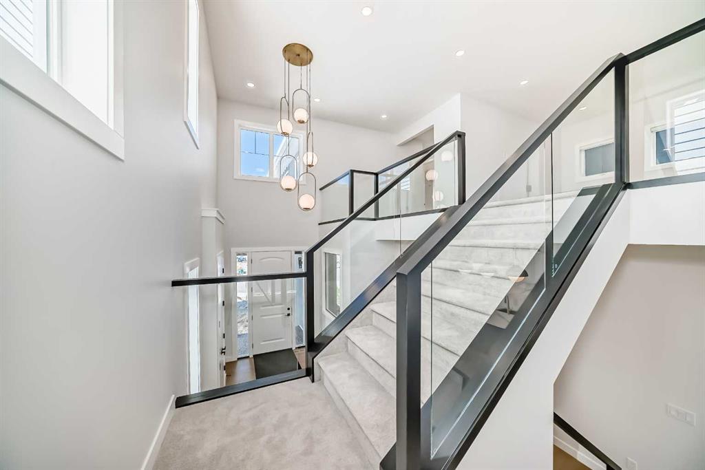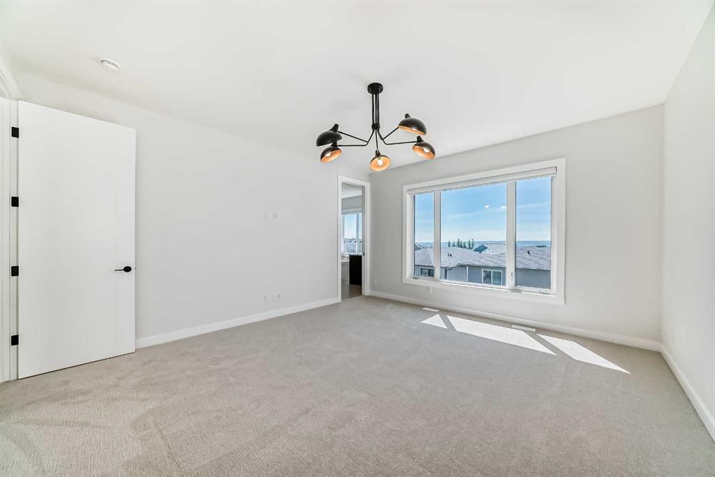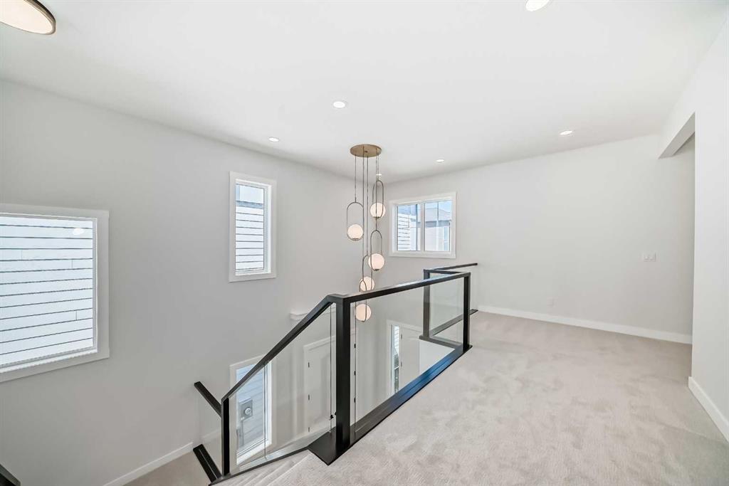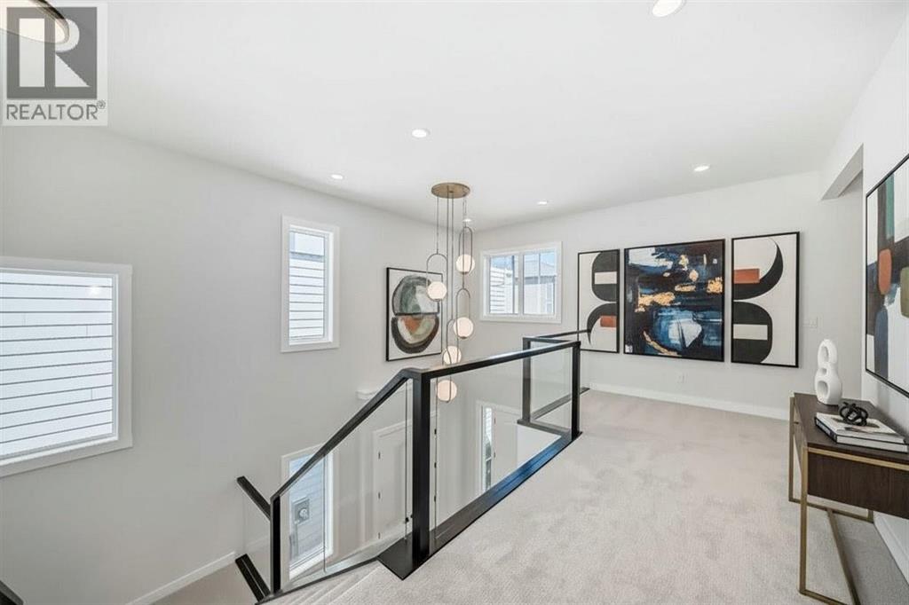 Newly Built, Never-Occupied Executive Shane Homes residence situated in the prestigious Aspen Spring Estates in Springbank Hill. This stunning property blends striking design with everyday functionality while offering exceptional value and elegance. With over 4000 sqft of thoughtfully designed living space, this home delivers an elevated lifestyle in one of Calgary’s most sought-after neighbourhoods. Step inside to an architecturally striking open-concept main floor that impresses at every turn. High ceilings with large windows, a spacious flex room ideal for a home office or den, a bright and inviting living room, and a sleek 2-piece powder room. Large windows flood the space with natural sunlight, highlighting the beauty of the hardwood flooring that flows throughout the main level. At the heart of the home, the chef-inspired kitchen is both stylish and functional. It features stainless steel appliances, a 67-inch refrigerator, a gas cooktop, Vent-A-Hood, large upgraded countertops, a convenient walk-through pantry and a private spice kitchen—making it the perfect hub for family living or entertaining guests. The dining area opens seamlessly to a south-facing deck and backyard, offering the ideal indoor-outdoor lifestyle. Upstairs, the primary retreat offers a serene escape, complete with a generous walk-in closet and a spa-like 5-piece ensuite. Two additional bedrooms, a well-appointed main bathroom, a bright bonus room, and a laundry room complete the upper level—designed with convenience and growing families in mind. The finished walkout basement provides incredible versatility with two more bedrooms, a spacious living area, a full bathroom, and a kitchen rough in—ideal for multi-generational living or guests. Additional upgrades include: an oversized island with waterfall edge and hidden cupboards for extra storage, elegant window coverings, pot lights throughout the house, vaulted ceilings, widened staircase with glass railings, 10 mm glass in the private office, luxurious primary ensuite with oversized shower, drywalled and insulated garage and much more. Located just minutes from Aspen Landing Shopping Centre, top-rated schools, LRT and transit, walking paths, parks, and with easy access to the mountains and close to downtown, this home offers unmatched convenience and connectivity. Enjoy peace of mind with comprehensive new home warranty coverage, ensuring your investment is protected as you settle into this exceptional property. The home is vacant and move-in ready—this is luxury living redefined in Springbank Hill!