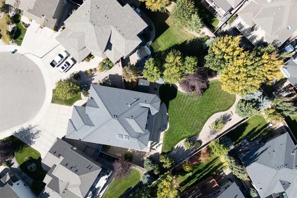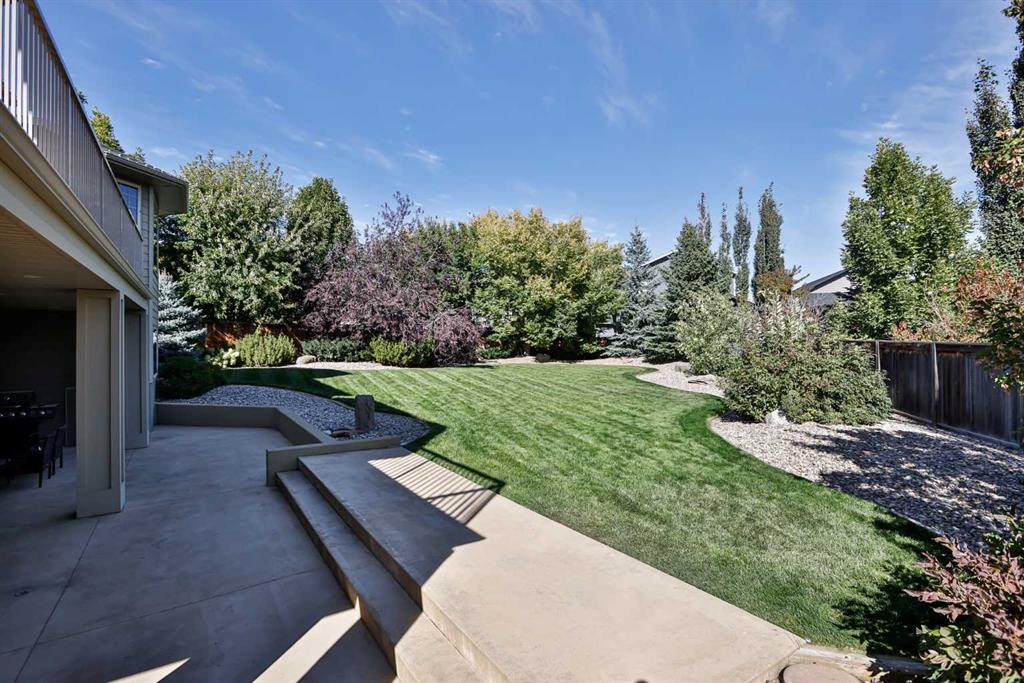 Executive bungalow located in a prestigious luxury cul-de-sac in Stonecrest Terrace! Situated on one of the largest lots in the neighbourhood—measuring nearly 1/3 of an acre—this property offers almost 4,000 sq. ft. of beautifully custom-designed living space.The curb appeal is exceptional, featuring a large covered front foyer perfect for morning coffee and exposed aggregate concrete detailing. Step inside and immediately feel the spaciousness of this sprawling bungalow. The impressive 14’ coffered ceiling, custom built-ins, and stunning fireplace showcase the craftsmanship throughout. Floor-to-ceiling windows stretch across the back of the home, flooding the living room with incredible natural light. The kitchen is designed to impress, highlighted by skylights, a sprawling island, cream cabinetry, corner pantry, abundant pot and pan drawers, gas range, built-in hood fan, garburator, hot water on demand (recirc) and an instant hot water tap at the sink—an upgrade you’ll never want to live without. The dining area features a tray ceiling and patio doors with a transom window leading to the expansive vinyl deck with aluminum railing, spanning almost the entire width of the home. A covered portion off the living room makes outdoor entertaining effortless. Main floor highlights include hardwood flooring, spindle railing, a front office with double garden doors, and a spacious mudroom/laundry room located off the garage. The primary suite is generously sized with a tray ceiling and ceiling fan. The ensuite is truly luxurious, offering a jetted tub, 5’ shower, oversized vanity with double sinks, dual linen towers, makeup station, linen closet, and decadent in-floor heating. A large walk-in closet completes the retreat. The walkout basement features 9’ ceilings and oversized windows that fill the space with light. A second gas fireplace with custom maple mantle and built-ins anchors the family room, enhanced by extensive pot lighting. The impressive built-in bar includes granite countertops, abundant cabinetry, bar sink, bar fridge, and a built-in TV that stays with the home. Three additional bedrooms and a 4-piece bathroom complete the lower level. The backyard feels like your own private park, with mature trees, beautiful curbing detail separating lawn and landscaping, shrubs, and gravel features. The exposed aggregate patio under the deck is expansive and perfect for entertaining. A shed is conveniently tucked along the side of the home. The home’s double rear turrets add timeless architectural charm. The oversized 26’ x 28’ garage is insulated, drywalled, painted, and equipped with a gas heater. This bungalow truly offers the triple threat: an exceptional floor plan, a prime location, and a massive lot. Contact your favourite REALTOR® today to book a showing.