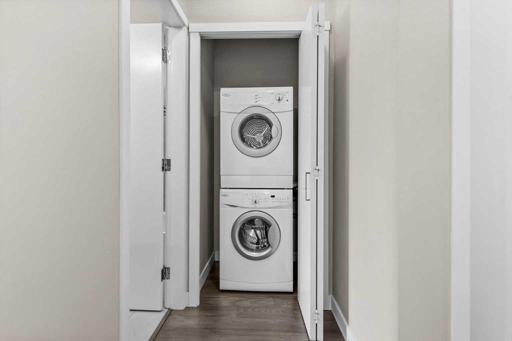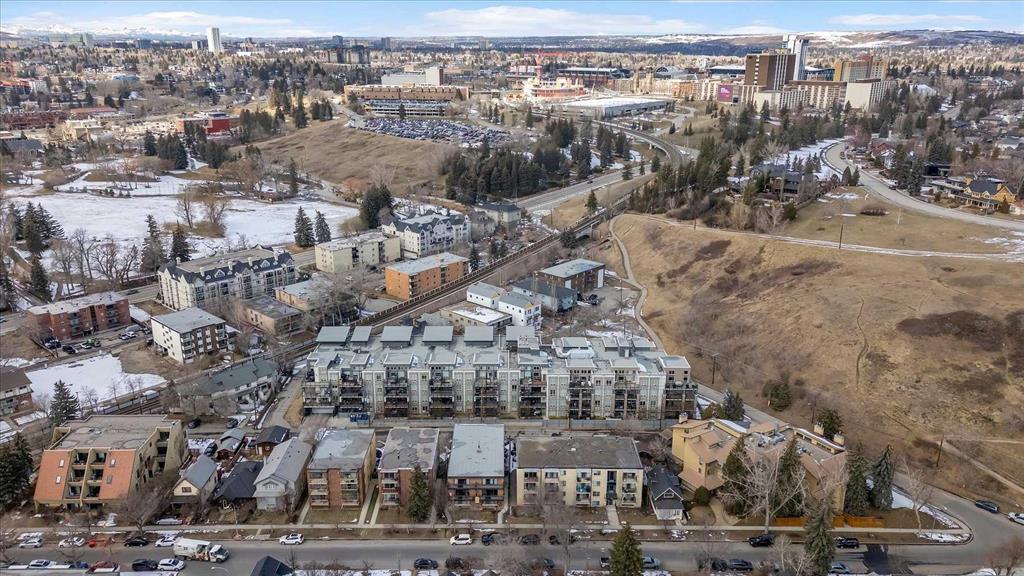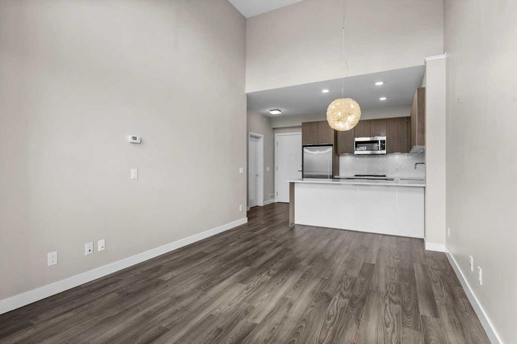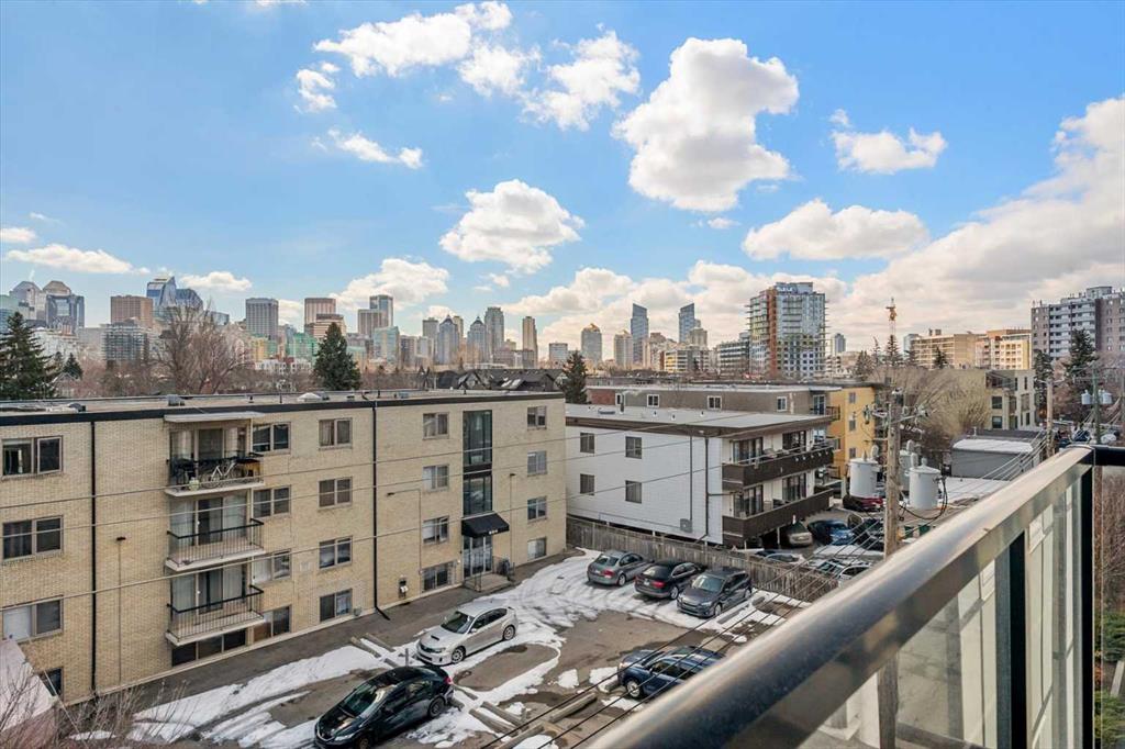 There's a version of city living that gets talked about a lot — and then there's the version you actually get to live. This is the latter. Perched on the top floor of The Ven with views of Calgary's downtown skyline, this one-bedroom penthouse sits in the heart of Sunnyside, steps from Kensington and one of Calgary's most walkable communities. Fourteen-foot vaulted ceilings, massive windows that fill the space with light, and a south-facing balcony so generous it becomes a room of its own. Inside, the open-concept living and dining area feels genuinely spacious, those soaring ceilings and oversized windows do a lot of the heavy lifting, making the space feel bright and open on a quiet weeknight and easy to have people over on the weekend. The kitchen is well set up for someone who enjoys cooking, quartz countertops, stainless steel appliances, and a gas cooktop that gives you real control. In-suite laundry means one less errand on the to-do list, and additional in-suite storage means everything has a place without giving anything up. The primary bedroom is bright and naturally lit, connecting to a four-piece ensuite through a walk-through closet, a standup shower and soaker tub that make winding down at the end of the day genuinely easy. Then there's that balcony. South-facing, loaded with sun across all four seasons, with a gas hookup ready for the BBQ and enough room to actually use it — for morning coffee with the skyline in front of you, a summer dinner that stretches into the evening, or a quiet afternoon with a book and more sun than you expected in October. The location does what only a handful of Calgary neighbourhoods can. The Sunnyside LRT is steps away, putting downtown within a seamless commute and SAIT just up the hill, the kind of access that quietly shapes how you spend your time. Puccinella, Hayden Block, and Kensington Pub are down the street for evenings out, Kensington Wine Bar when the occasion calls for it, and High Ground Cafe or Agudo Coffee Roasters for the mornings that deserve a proper start. The Bow River pathways, Prince's Island Park, and everything the inner city offers are all within easy reach, close enough to be part of your regular week, not just a weekend plan. The building takes care of the rest — pet-friendly with board approval, visitor parking, a car wash, bicycle storage, an assigned storage locker underground, and a small workshop tucked in for the projects that need a bit more room to breathe. This is the kind of home and the kind of address that makes the decision easy, and makes you feel good about it long after you've settled in.